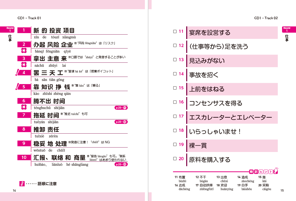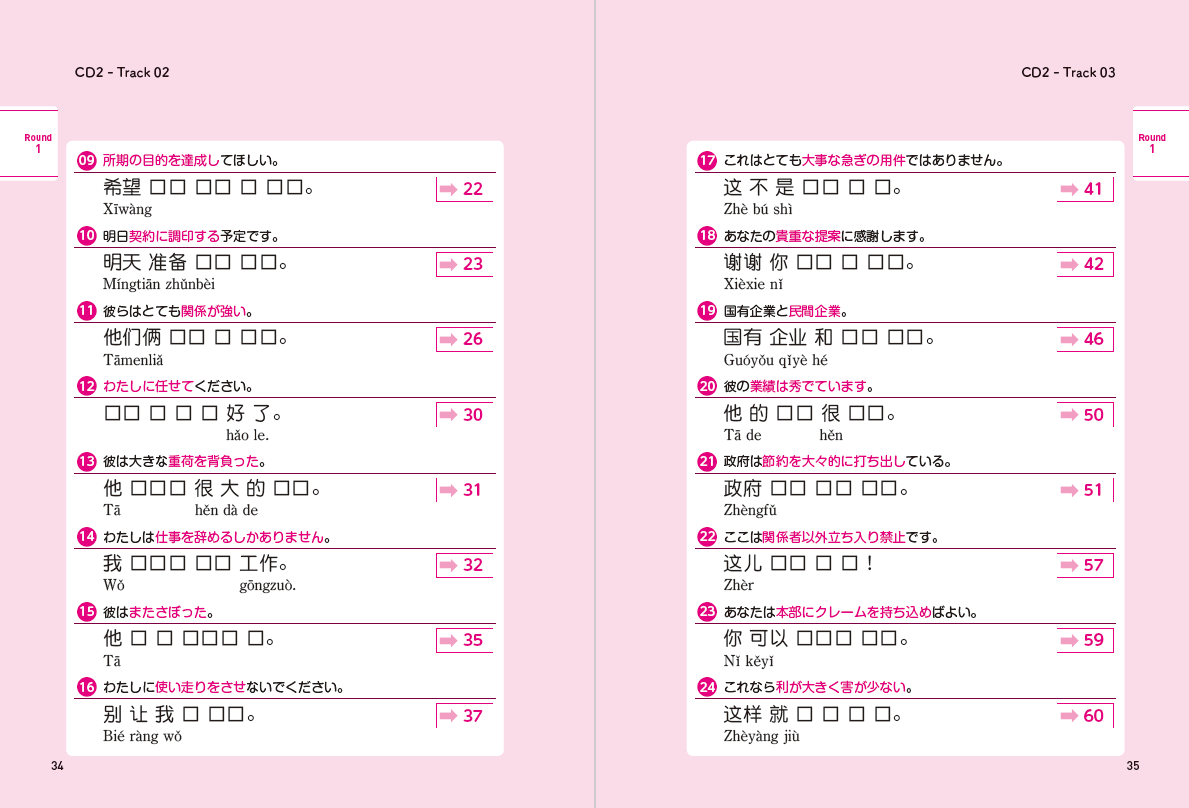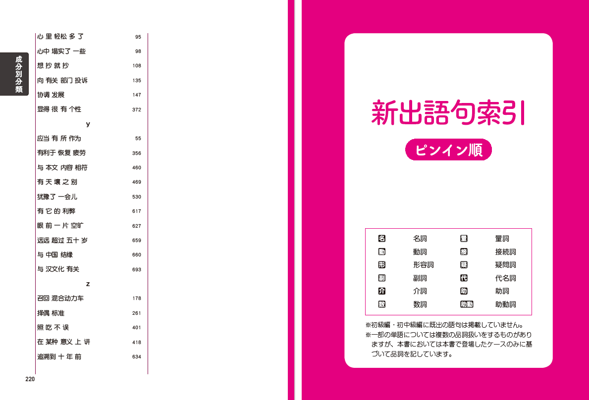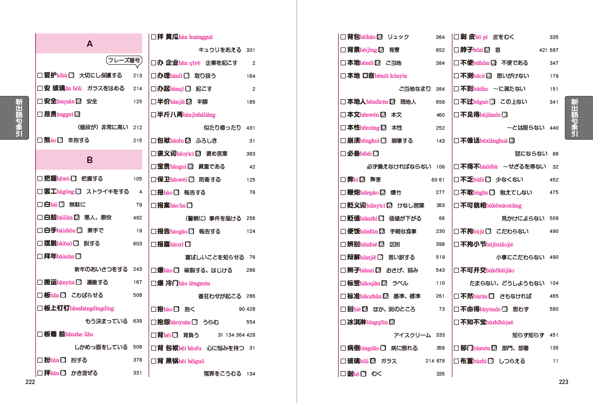 右ページの日本語をめくった次のページの中国語ですぐに確認。