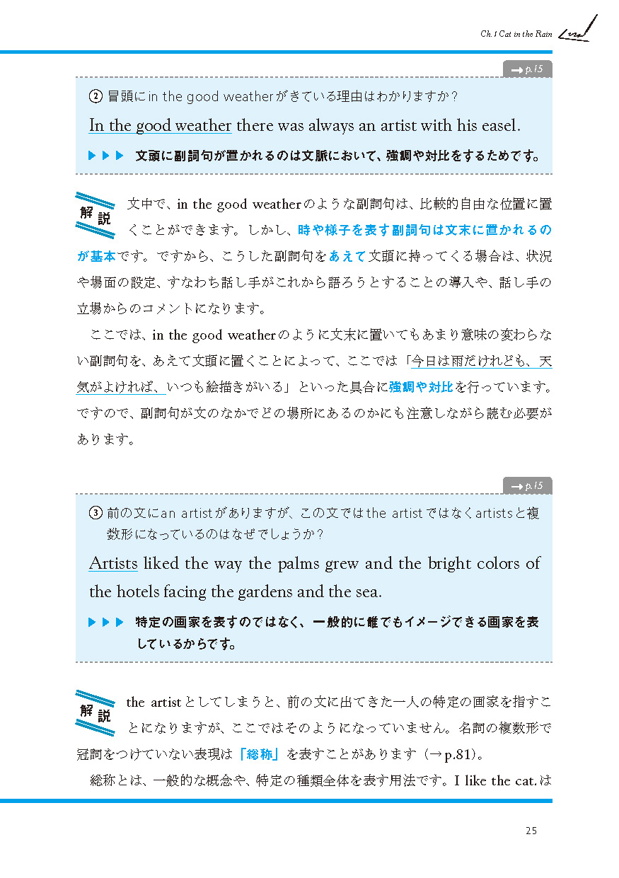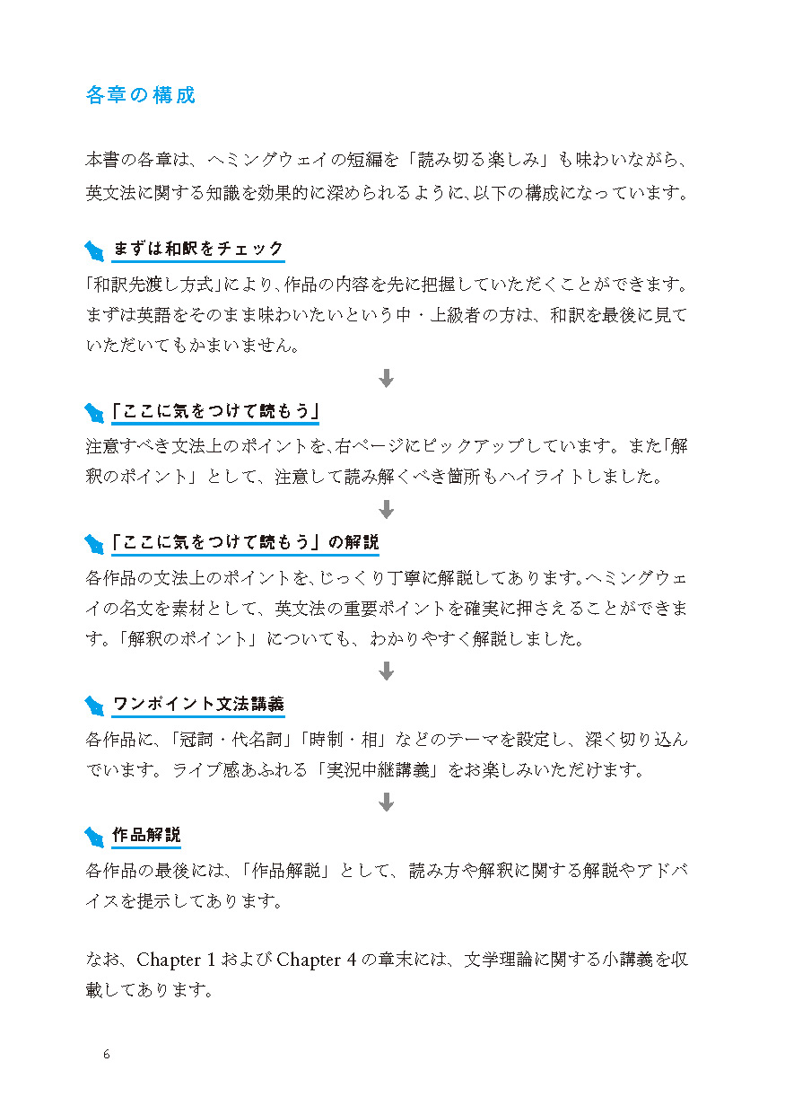 ●簡単な作品解説→和訳(「訳先出し」方式)→「語注付き英文」(文法ポイント洗い出し)→「洗い出した文法ポイントの解説」→「文法講義」という構成。文法に関する知識を深めながら、「作品を読み通す喜び」をどなたにも味わっていただけます!