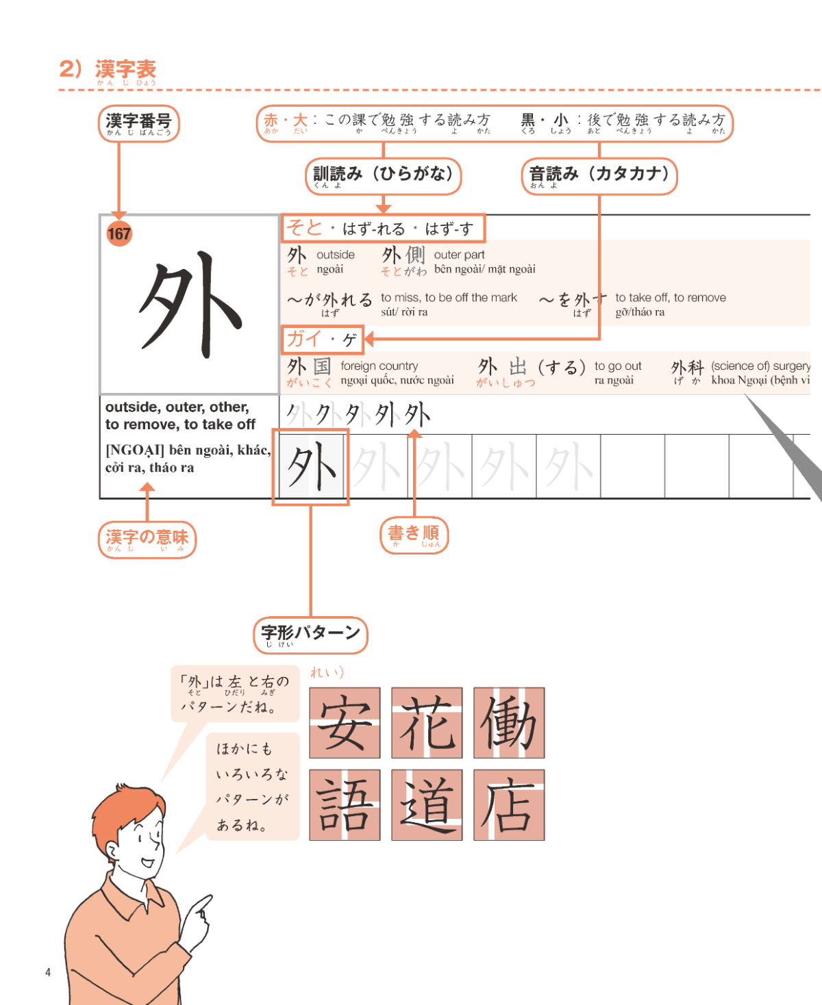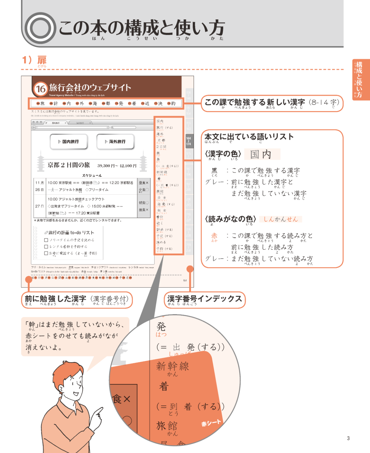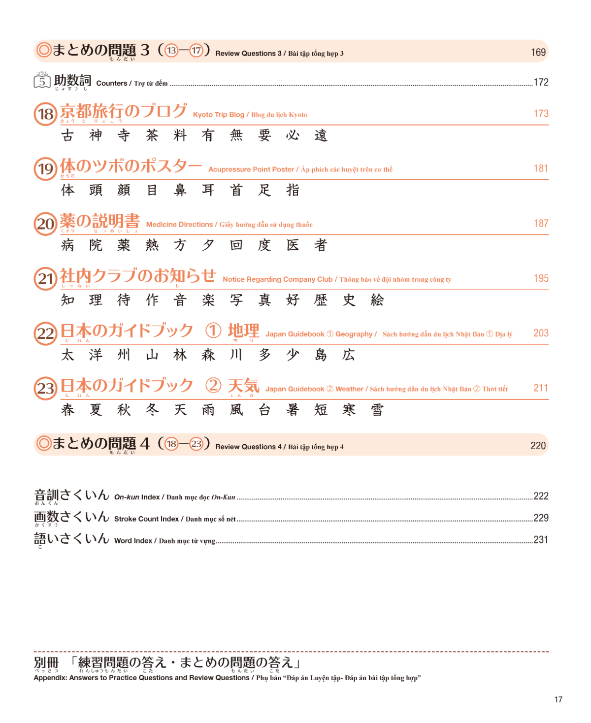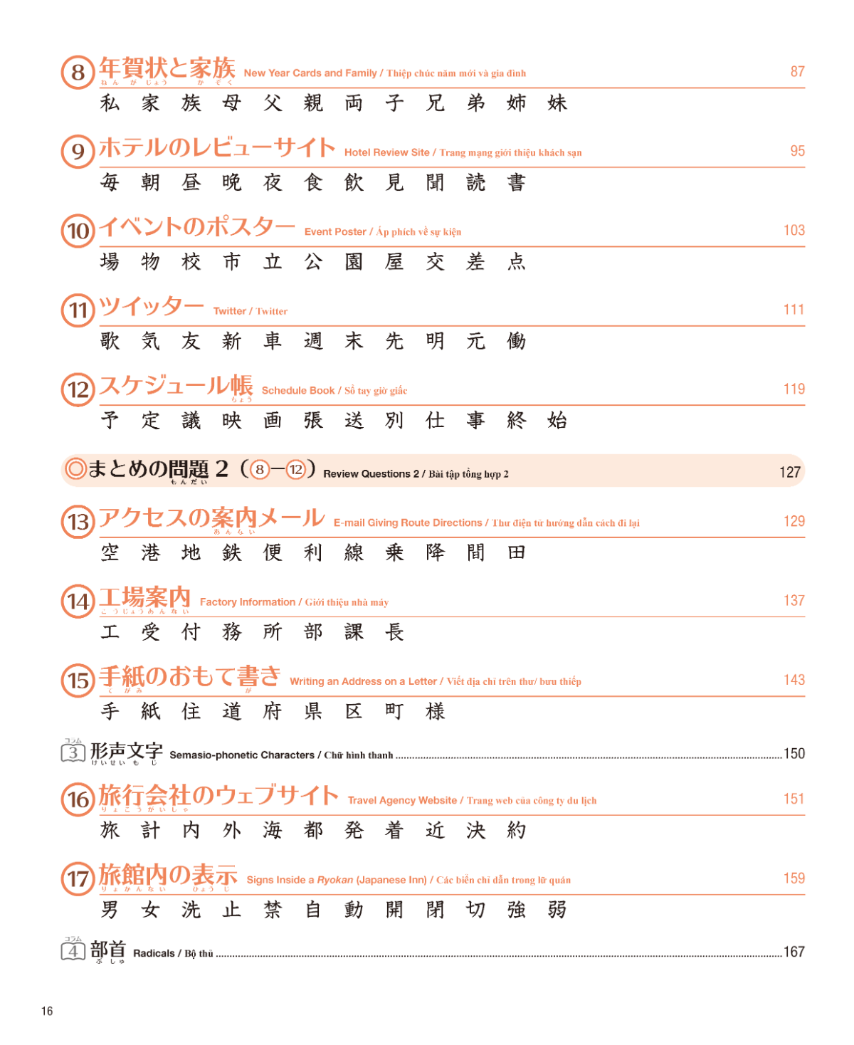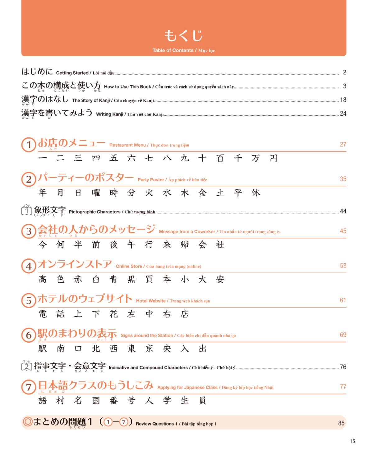 Kanji are introduced in an effective order that corresponds with each chapter for structured learning.