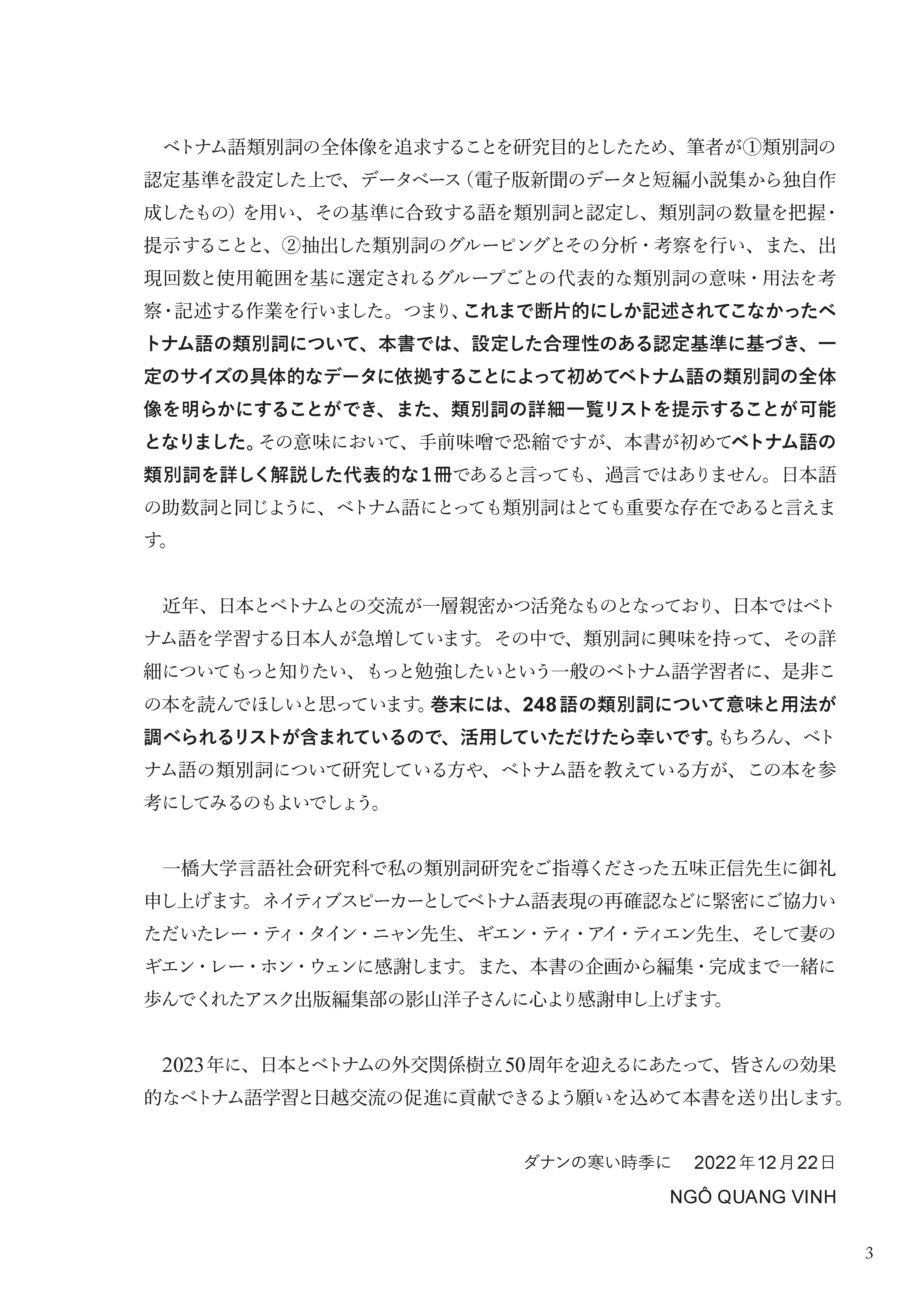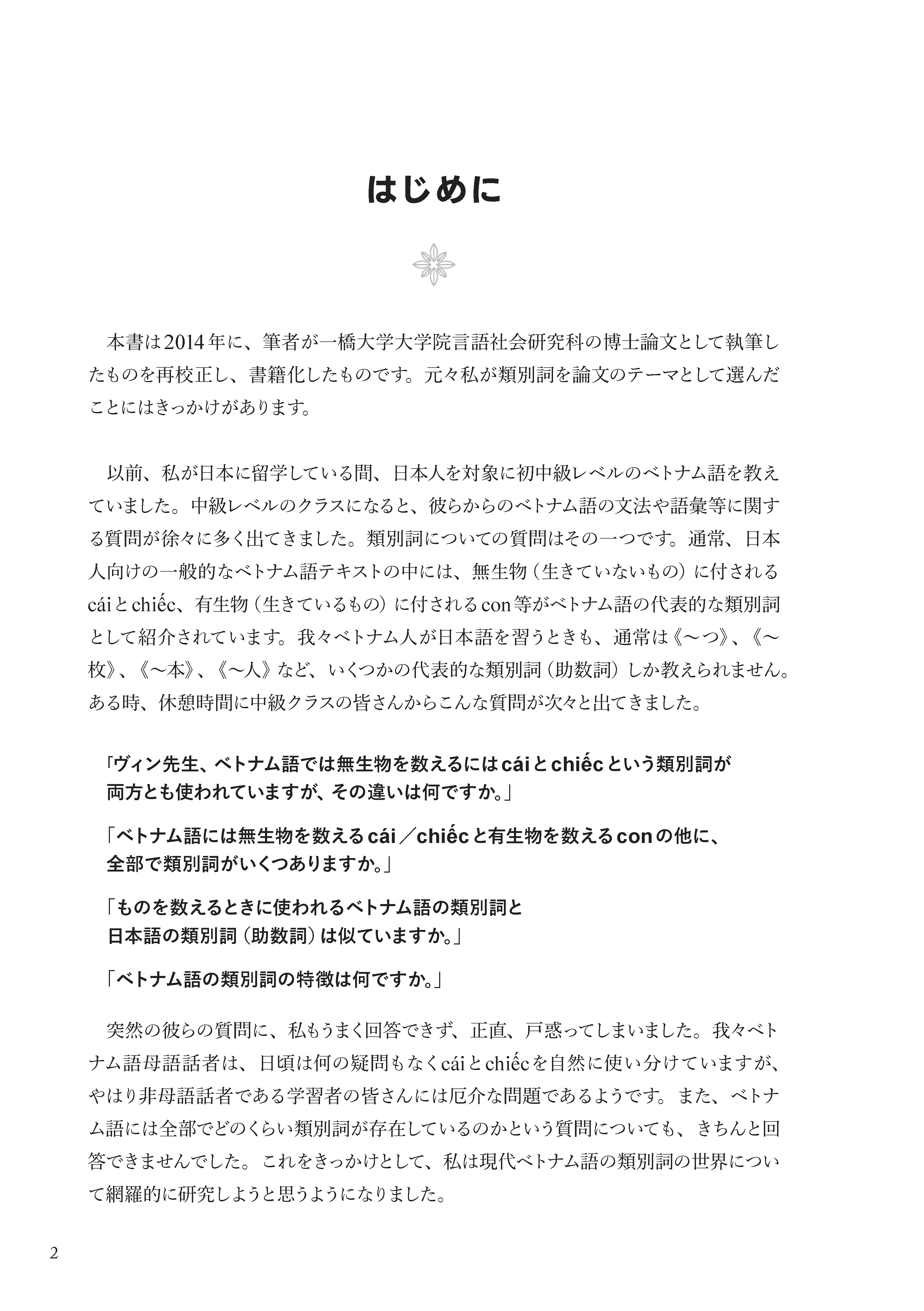 ベトナム語を研究したり、教えたりされている方にも、類別詞についてもっと知りたいと思っている一般の学習者の方にもおすすめします。