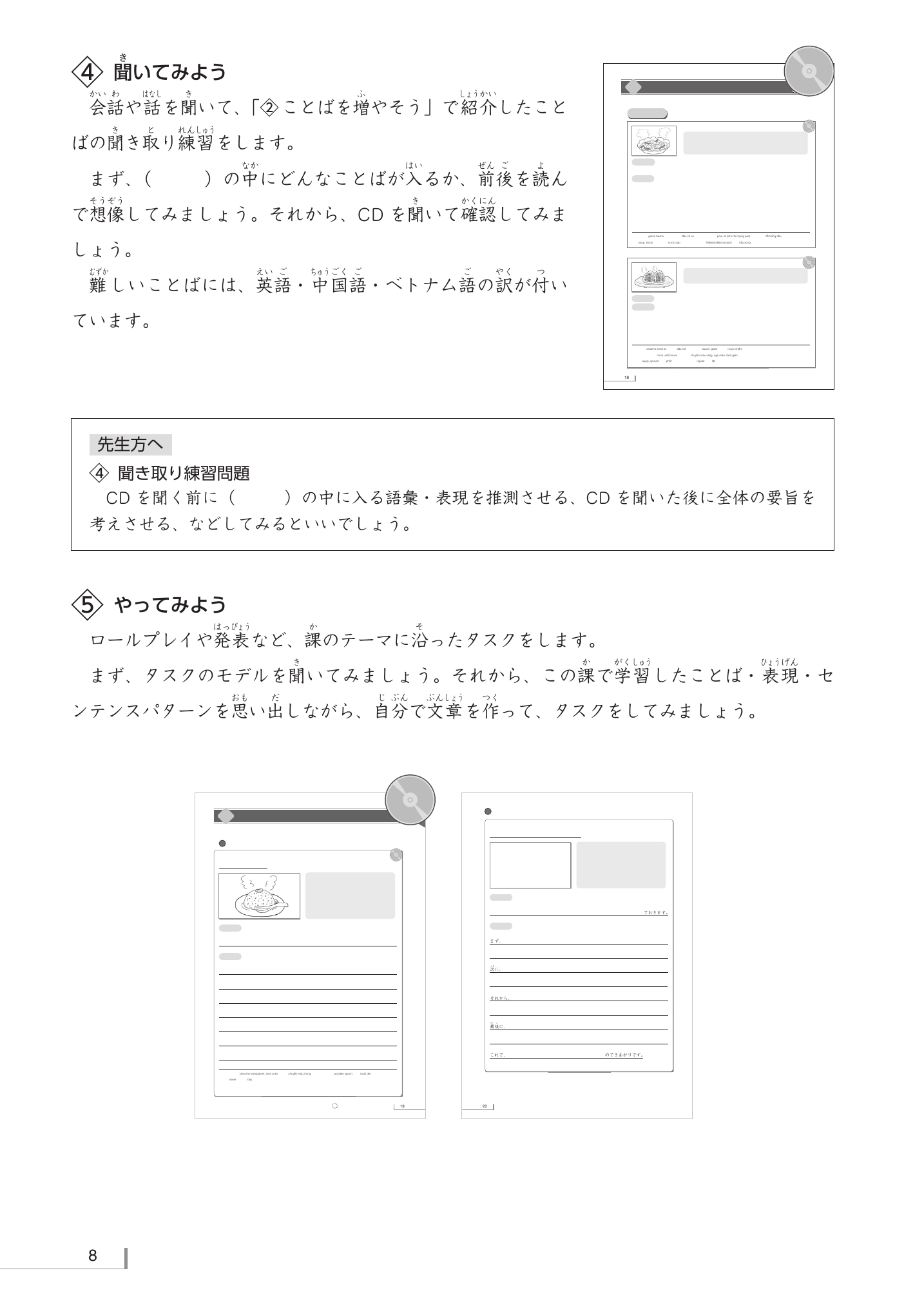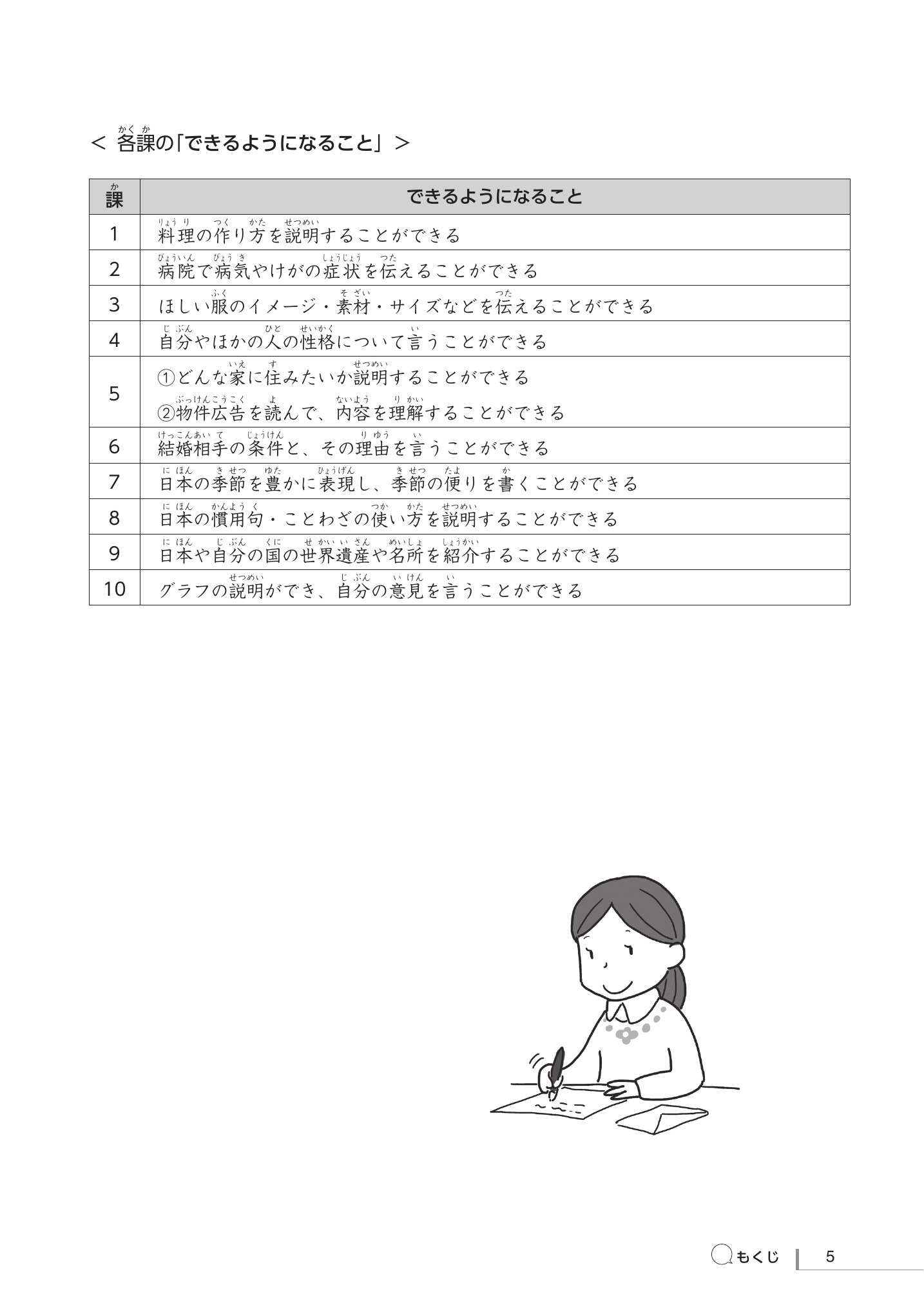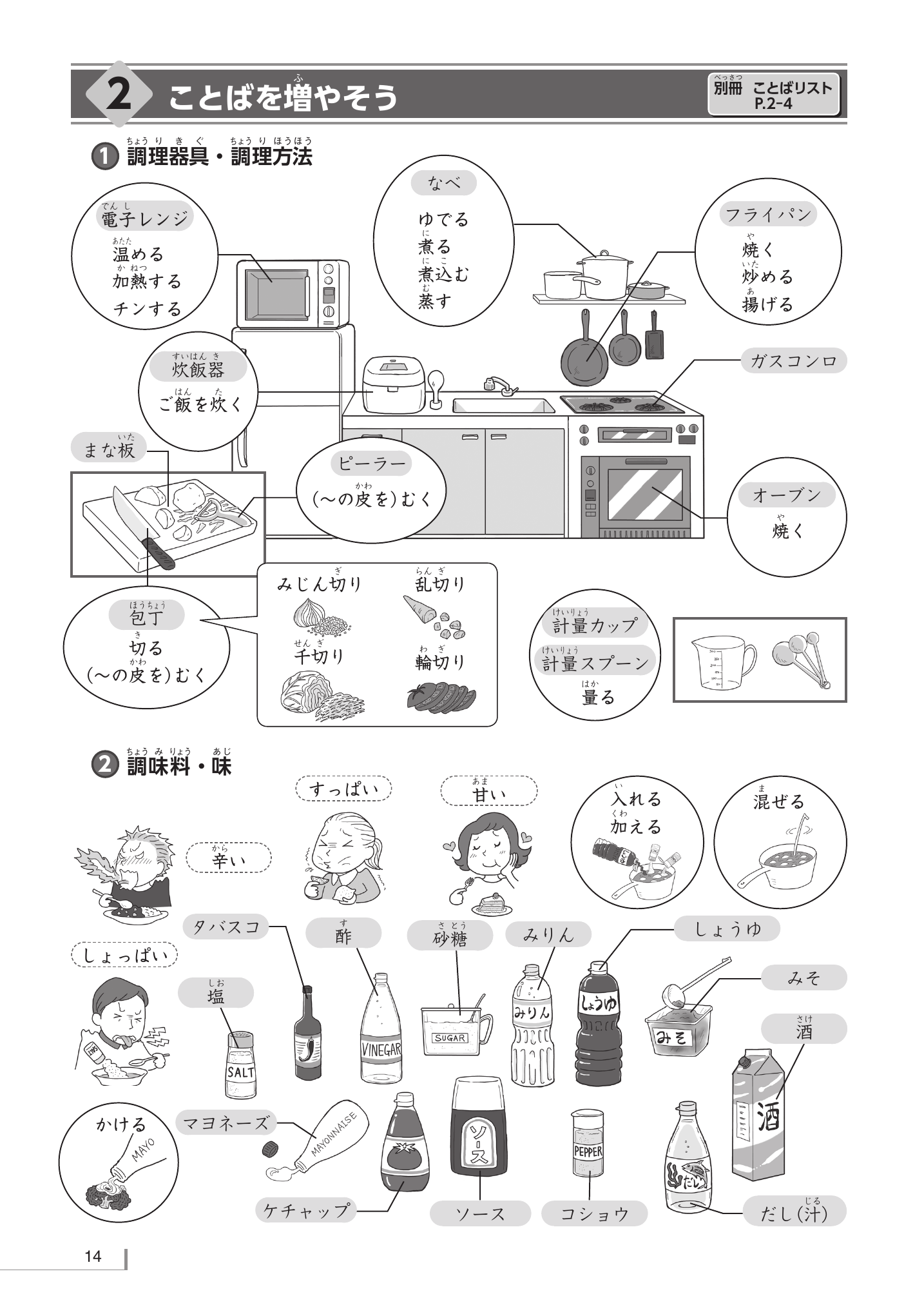 身近な生活場面や日本文化・習慣などをテーマに、そのテーマに沿った語彙をレベルの枠を超えて選定。