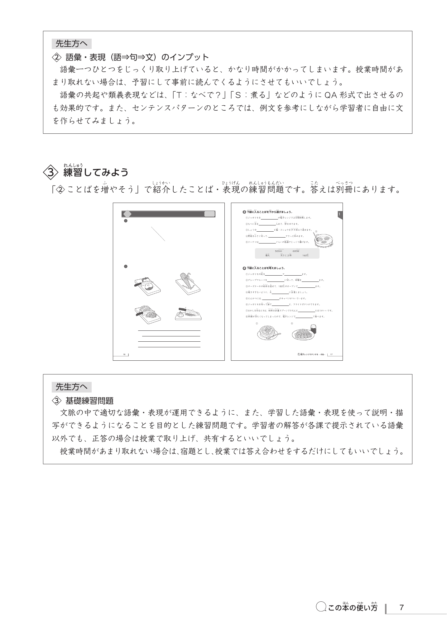 イラストを多用し、語彙の組み合わせ・結びつきなどから無理なく語彙を増やせる。