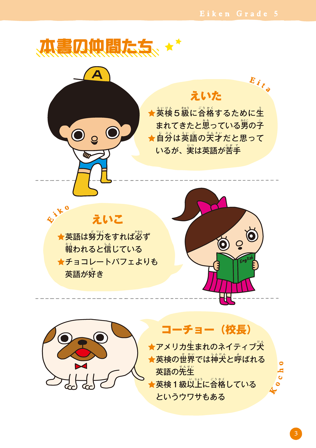 5級の合格に向けて、「えいた」と「えいこ」、そして「コーチョー」といっしょに楽しく勉強していきましょう!