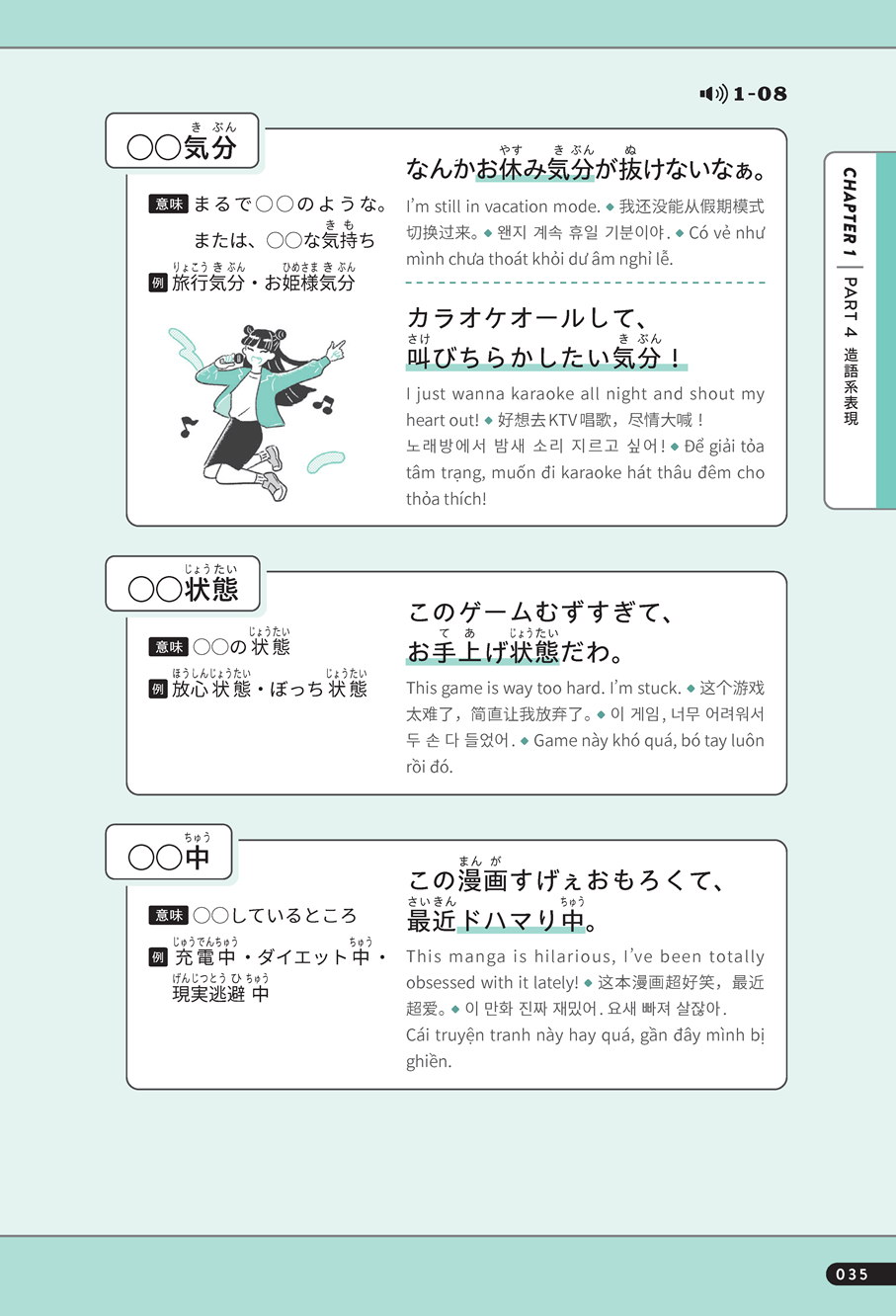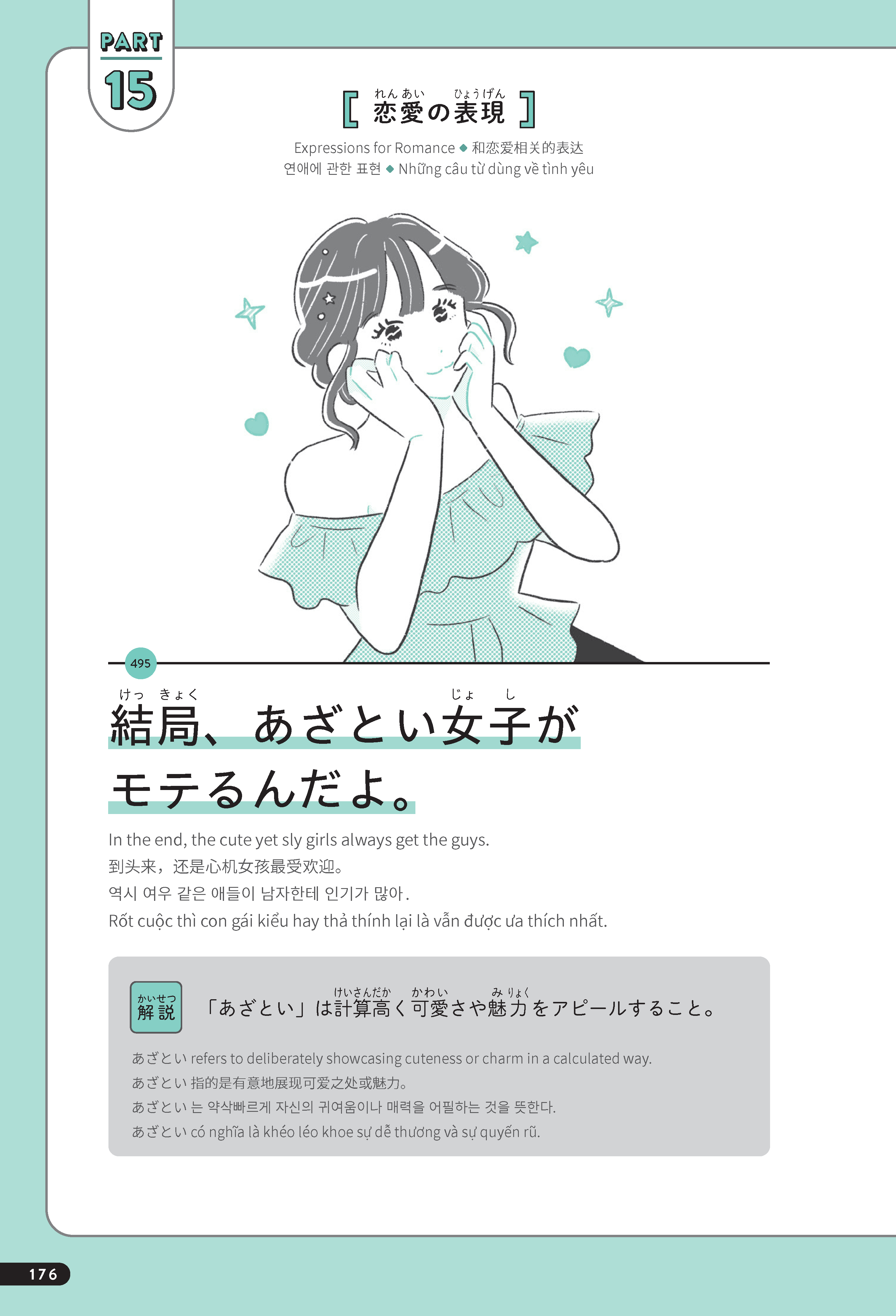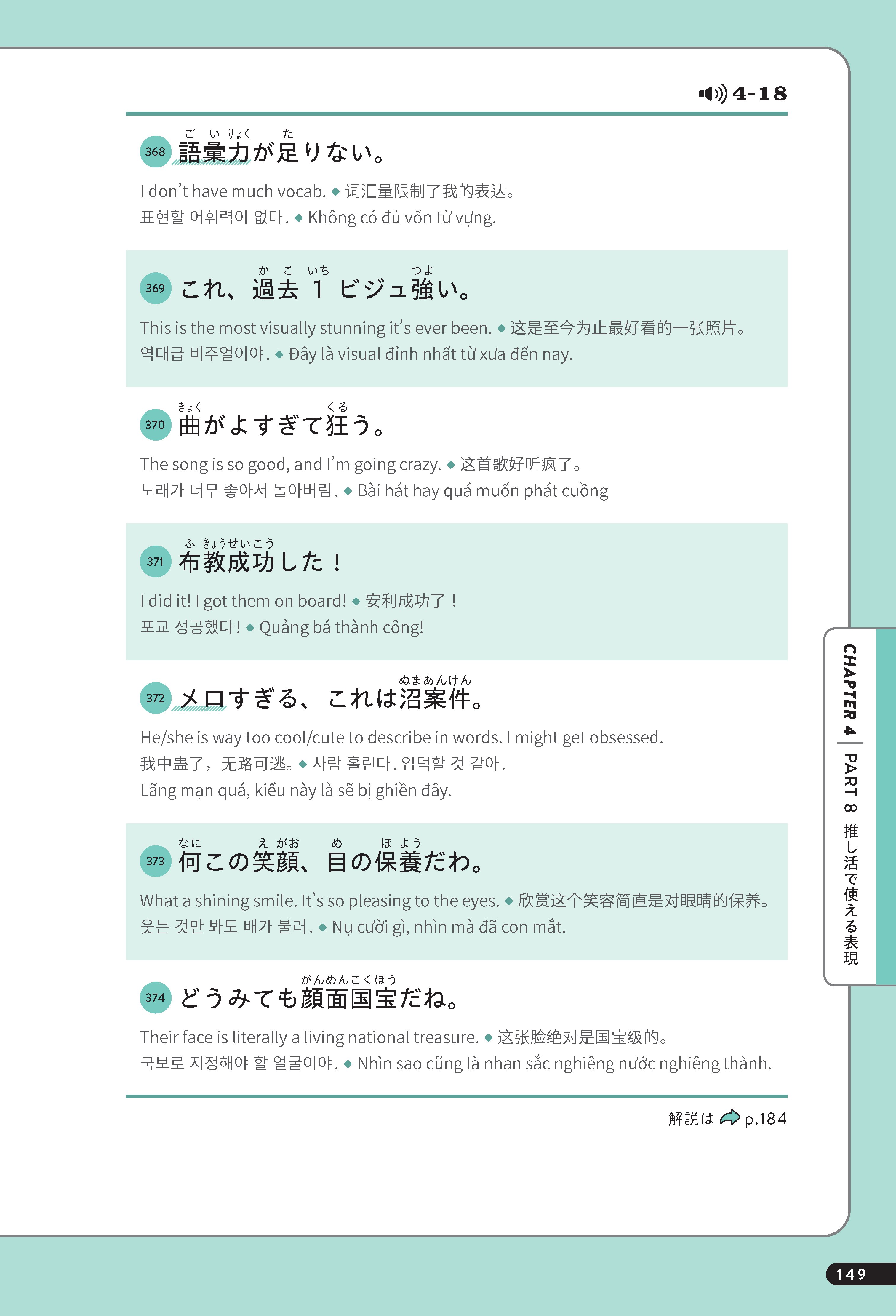 「ツボる」「えぐい」など、主に若者言葉を中心に、日常的で教科書に出てこない表現を学べます。