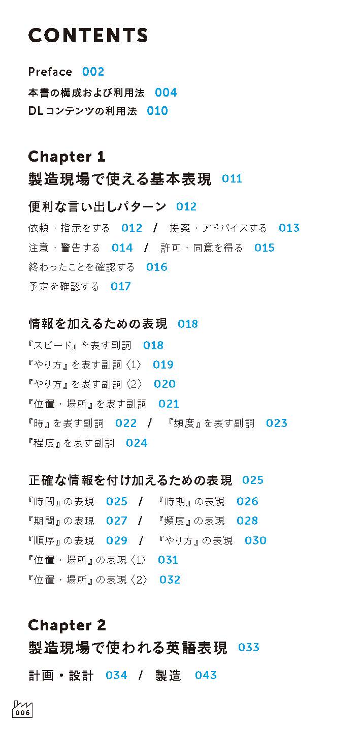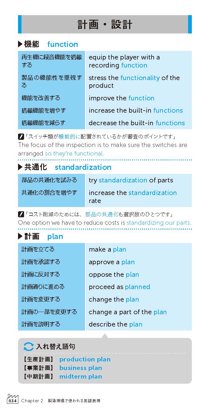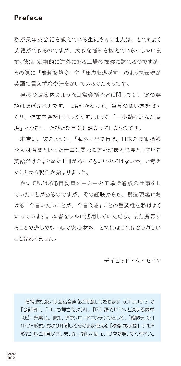 Chapter3には、部下や同僚とのコミュニケーションを取るための「製造現場で役立つコミュニケーション表現」が収録されています。
