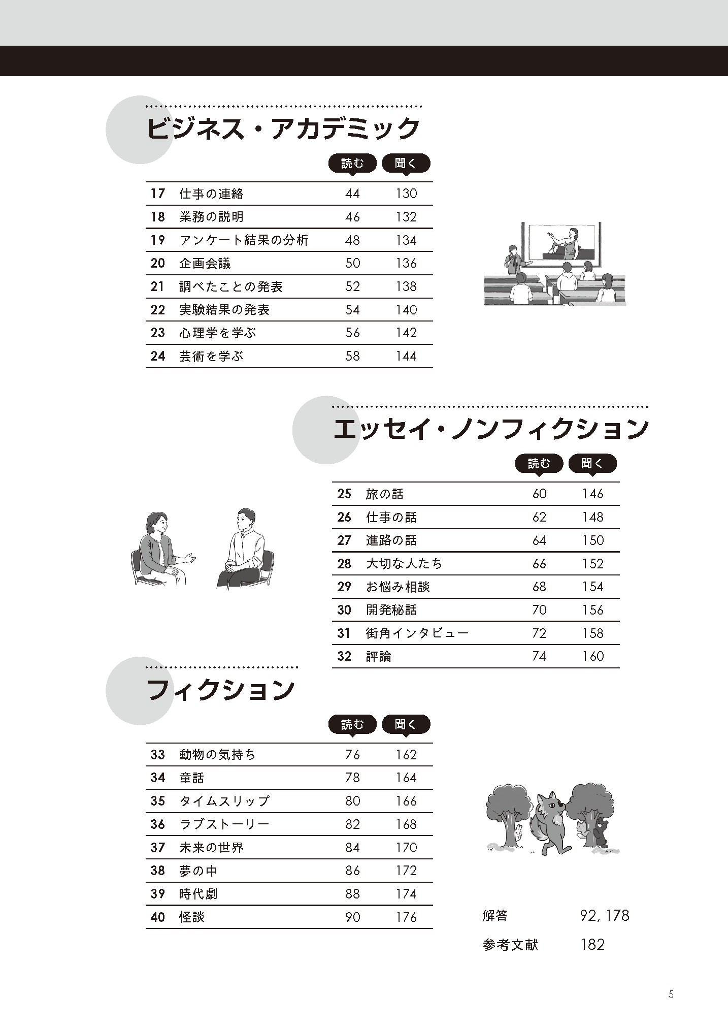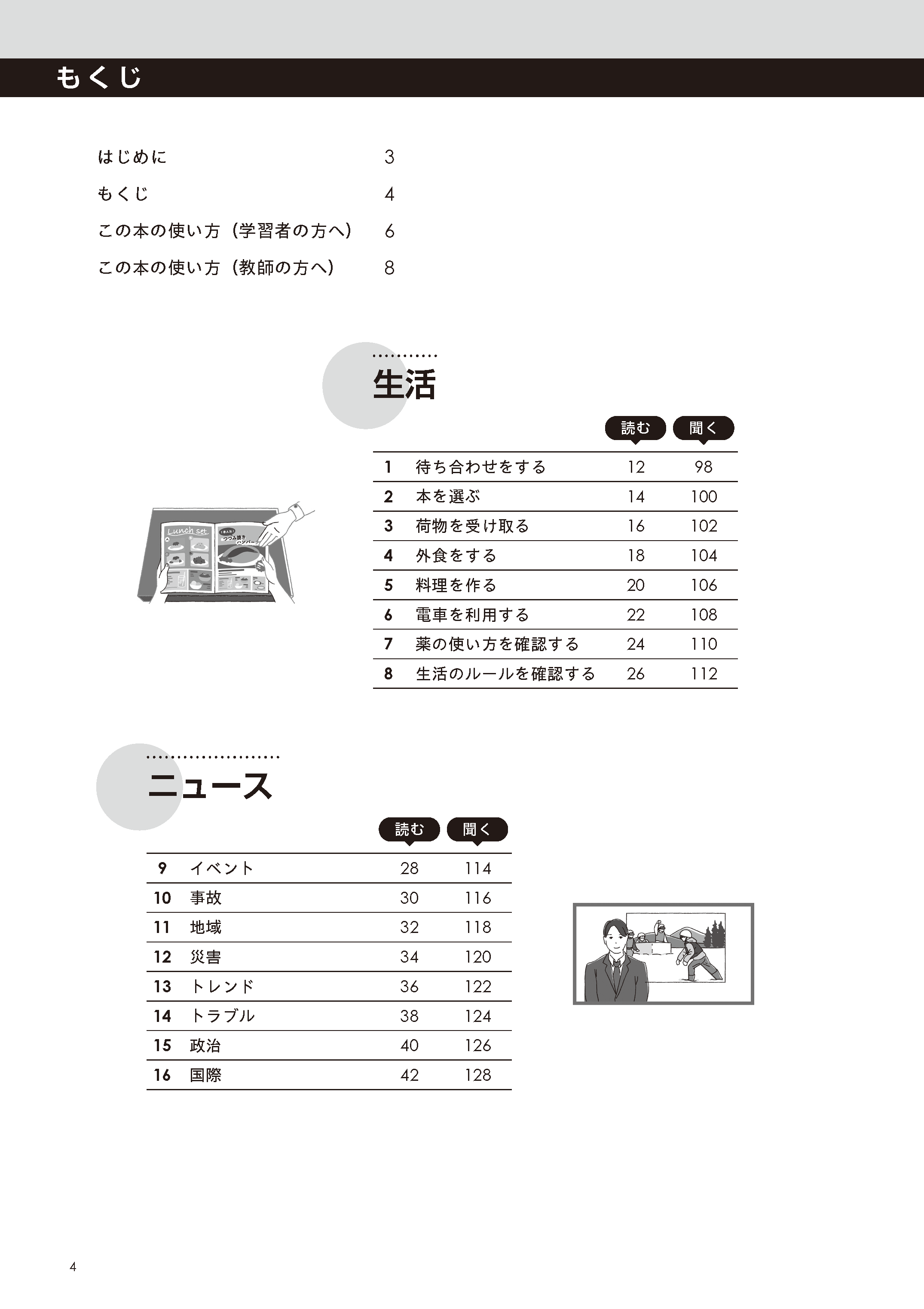 「読む・考える」「聞く・考える」の2パート構成。2つのパートはトピックがリンクしています。