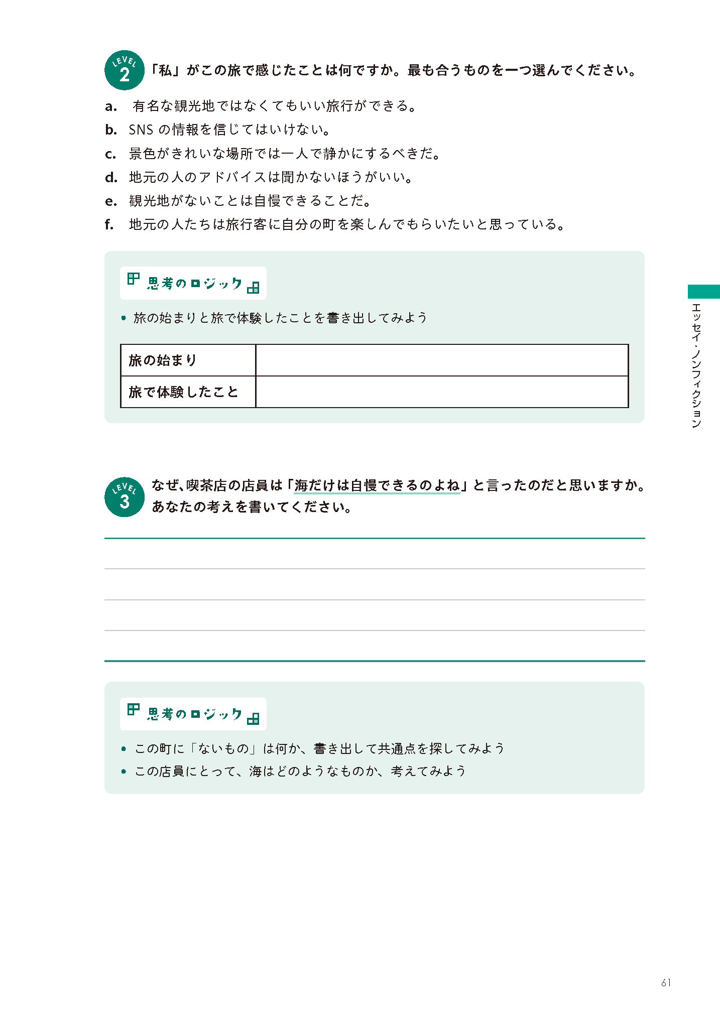 内容理解、考察、主張と段階的に進む設問で、自然と考えを深めることができます。