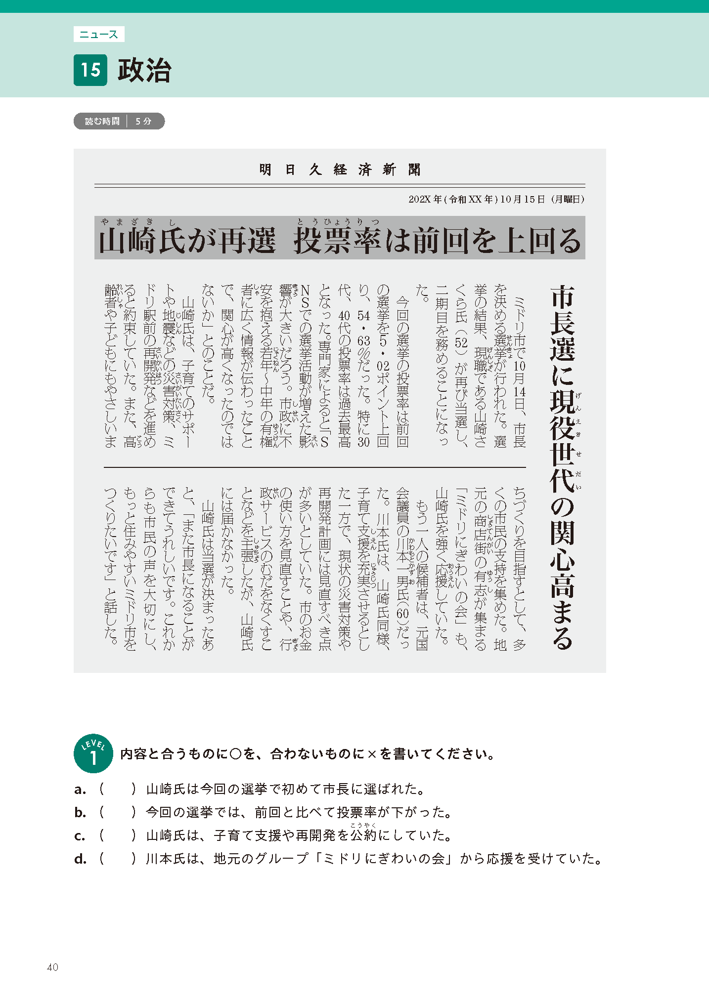 リアルで多様なトピックを読んで聞いて、社会で活きる日本語力を育てます。