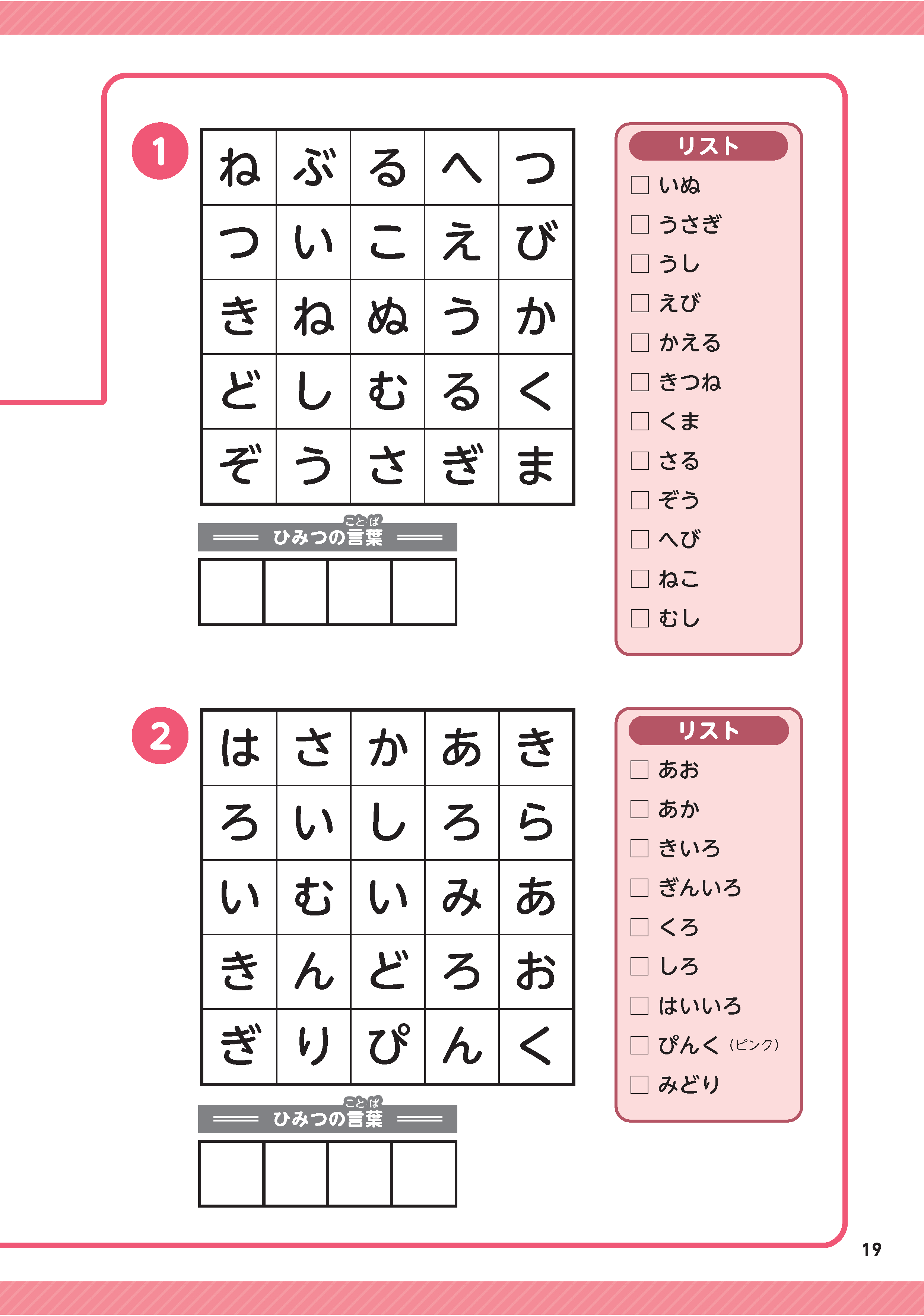 ②クロスワード・シークワーズ・なぞなぞなど、多様なパズルで飽きずに続けられる