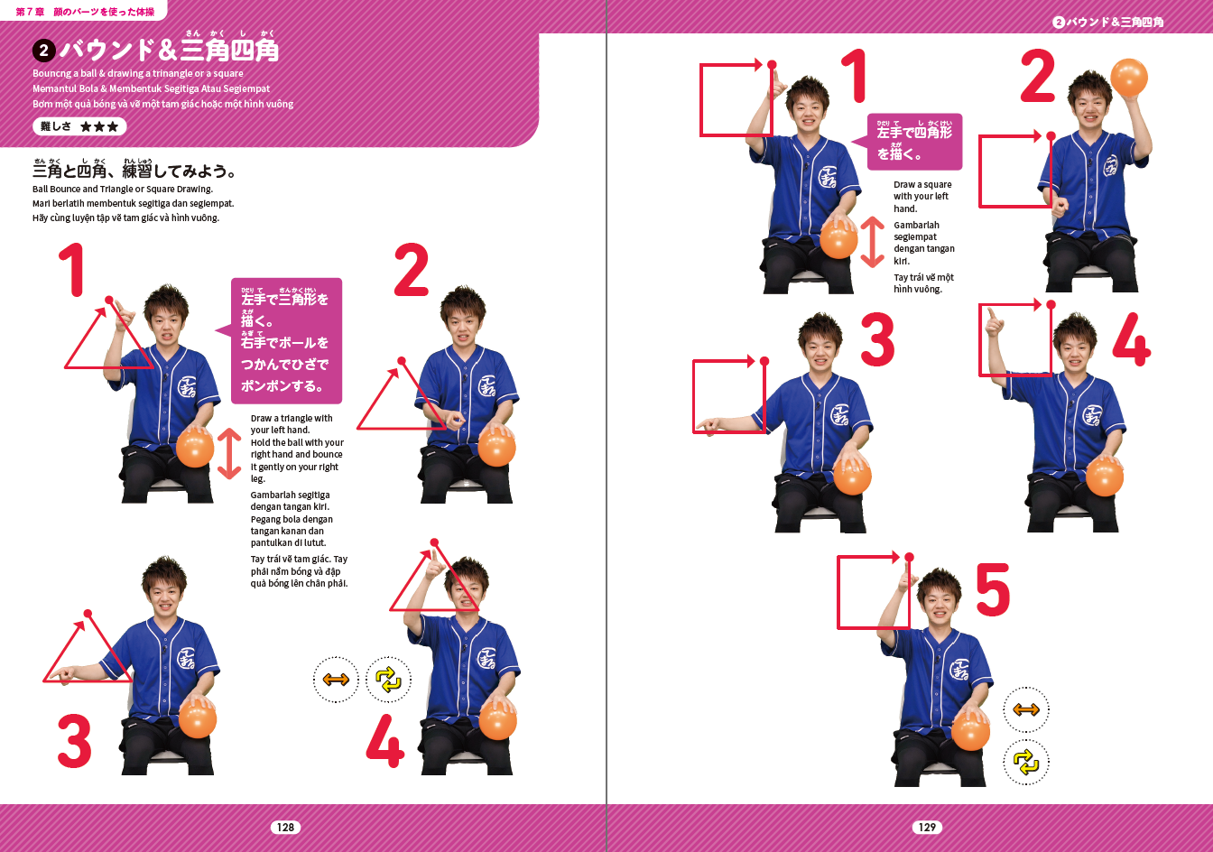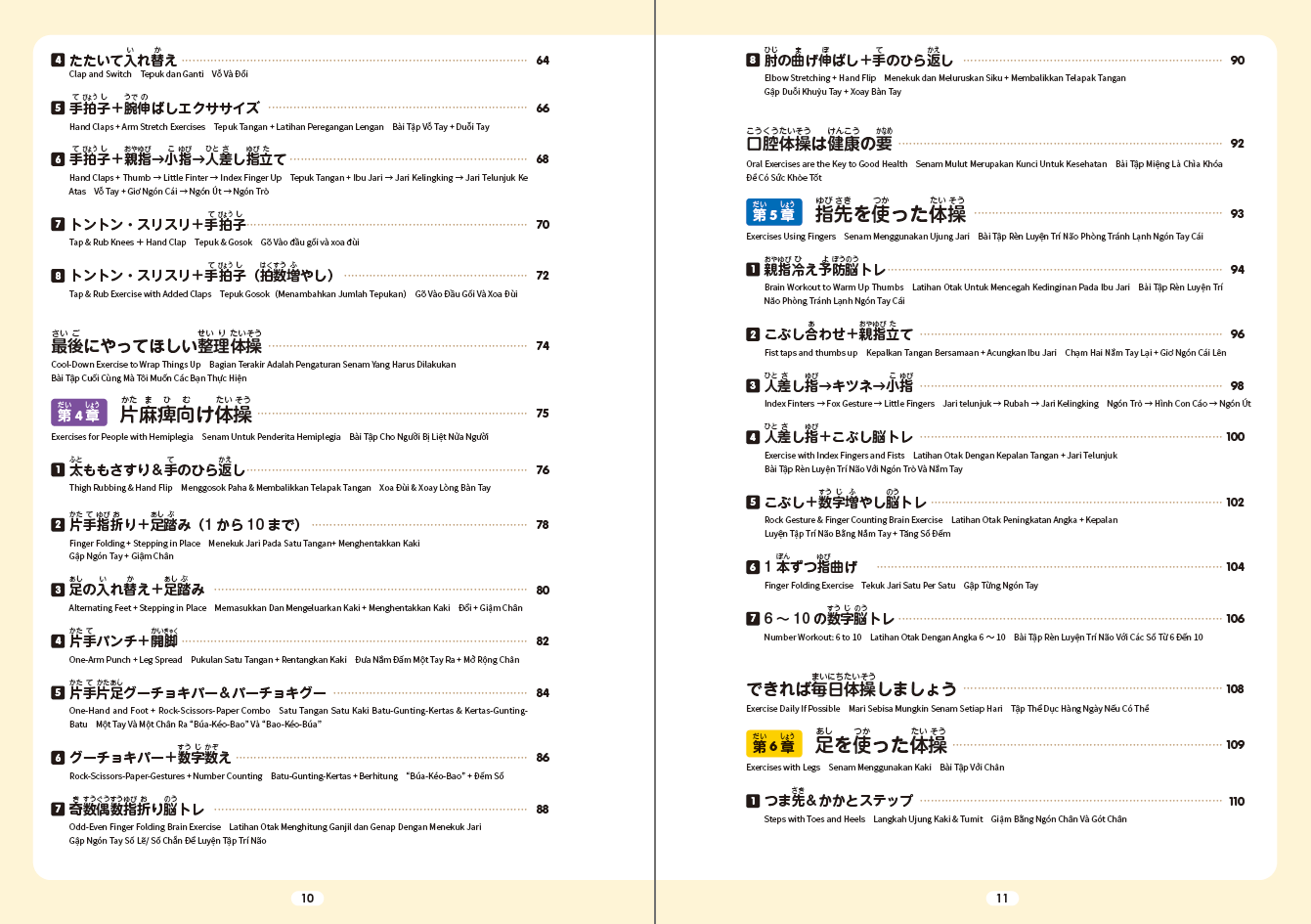 本書では、ごく簡単にできる体操から、やや難易度が高いものまでたくさんの体操を掲載しています。
