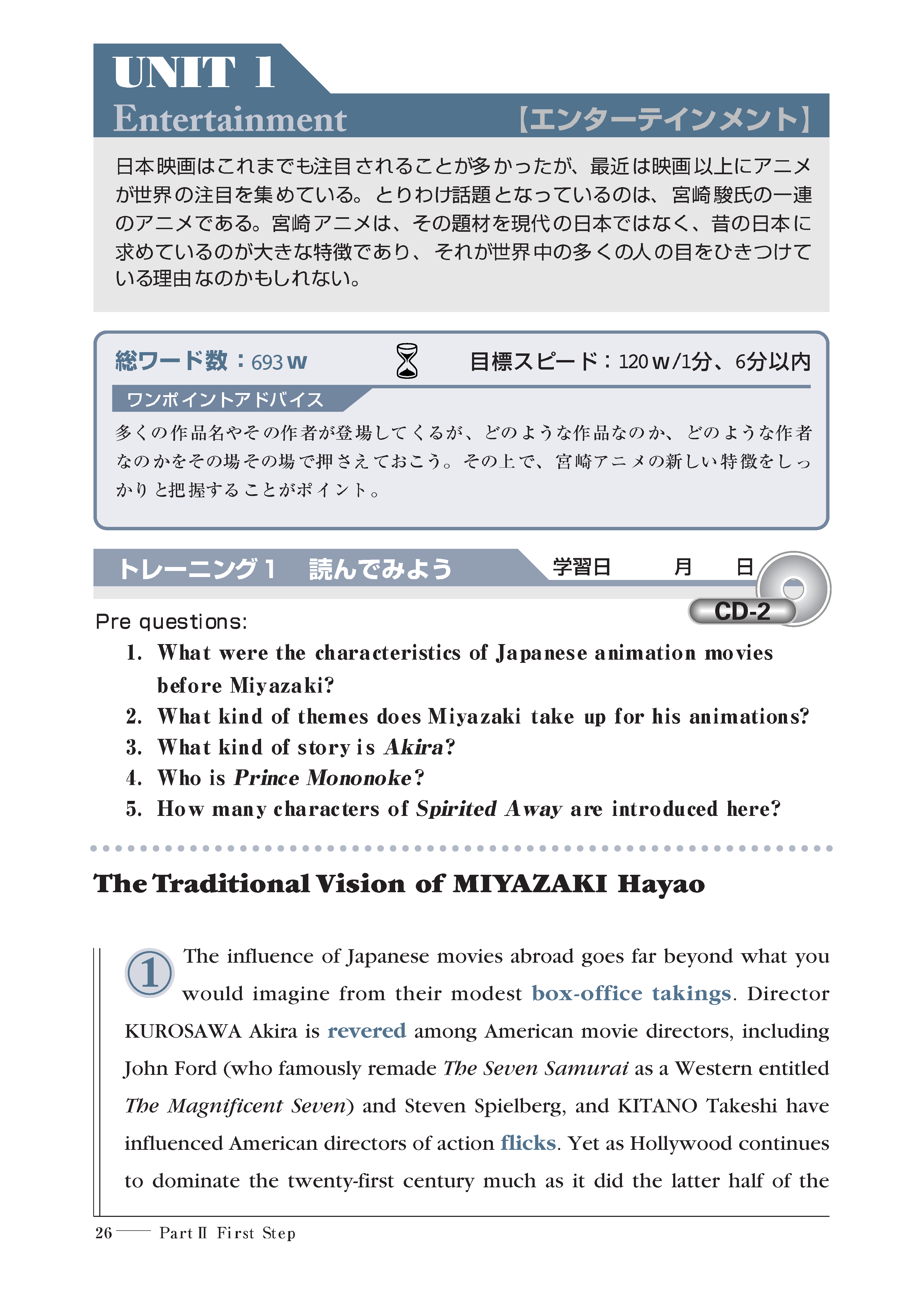 PartII First Step(1分間120ワードのスピードで700ワードの英文を読む)