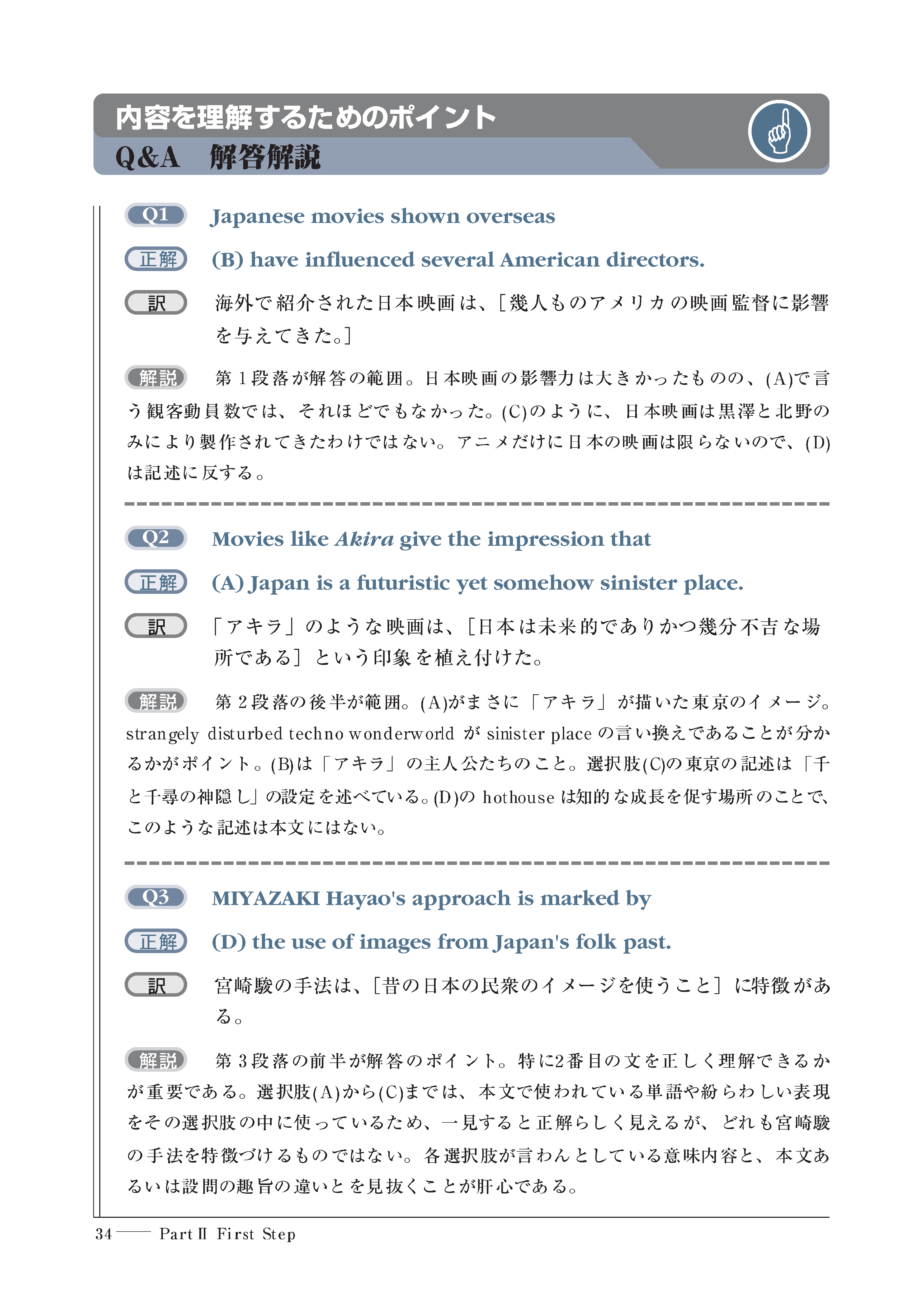 各ユニットの英文に関する質問に答え、自分がどれだけ内容を理解しているのか確認。