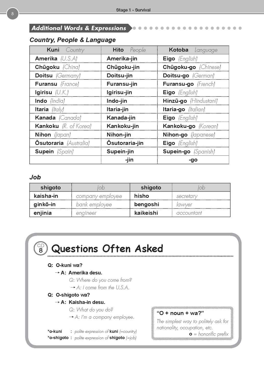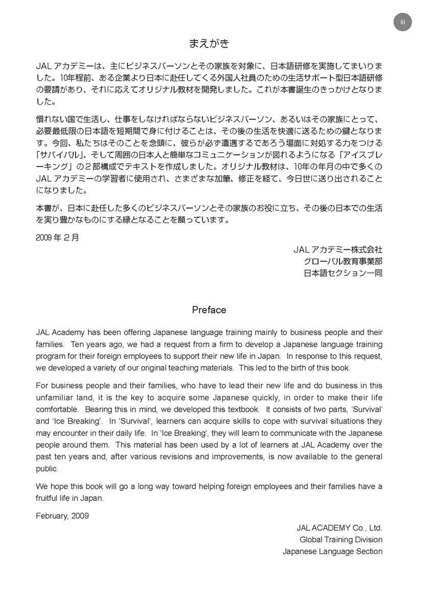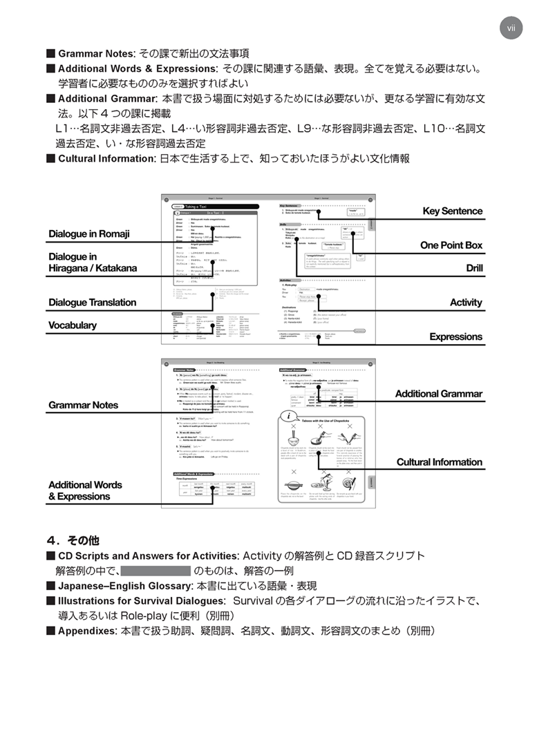 This textbook is designed for people who need to use Japanese immediately after arriving in Japan.