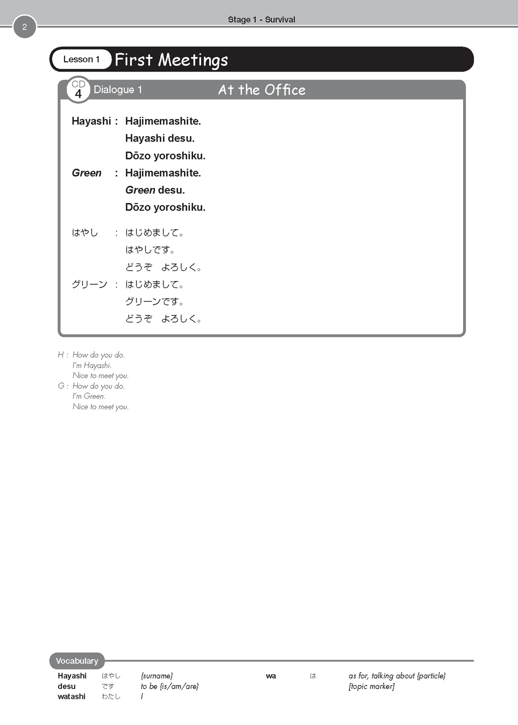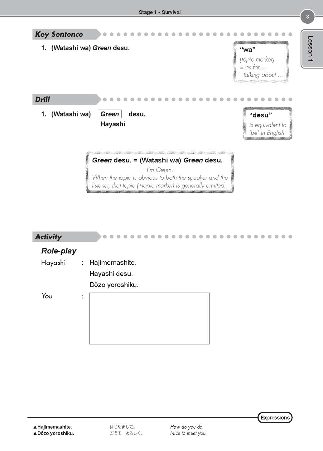 Since speaking is the main goal, all content is written in romaji (Roman letters) for ease of use.