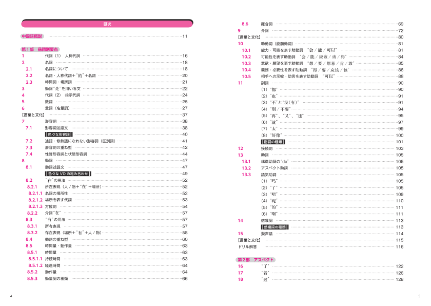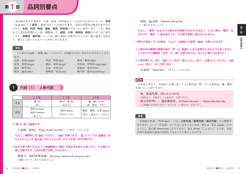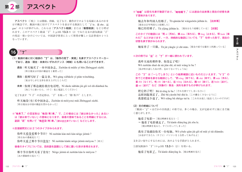 各種文法事項および概念を論じる際には、具体例(ピンイン付き)をたくさん示しつつ、より明確な形で内容を理解できるように努めました。