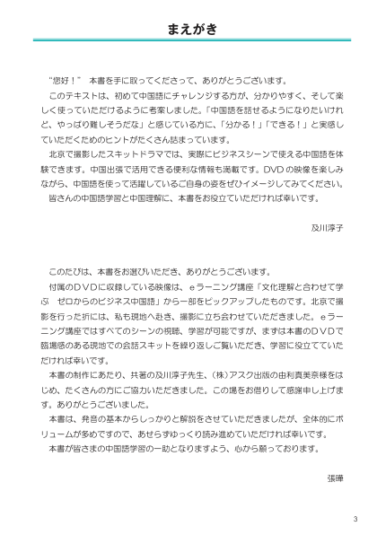 発音の基礎からビジネスシーンでの応用まで、中国語に初めてチャレンジする方も、少し勉強してさらに実際の運用力をつけようという方も、分かりやすく、楽しみながら学習できる実用中国語テキストです!
