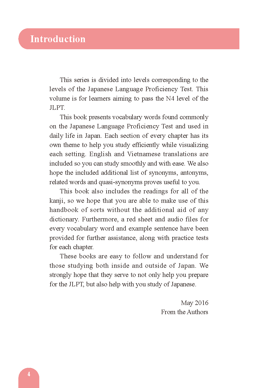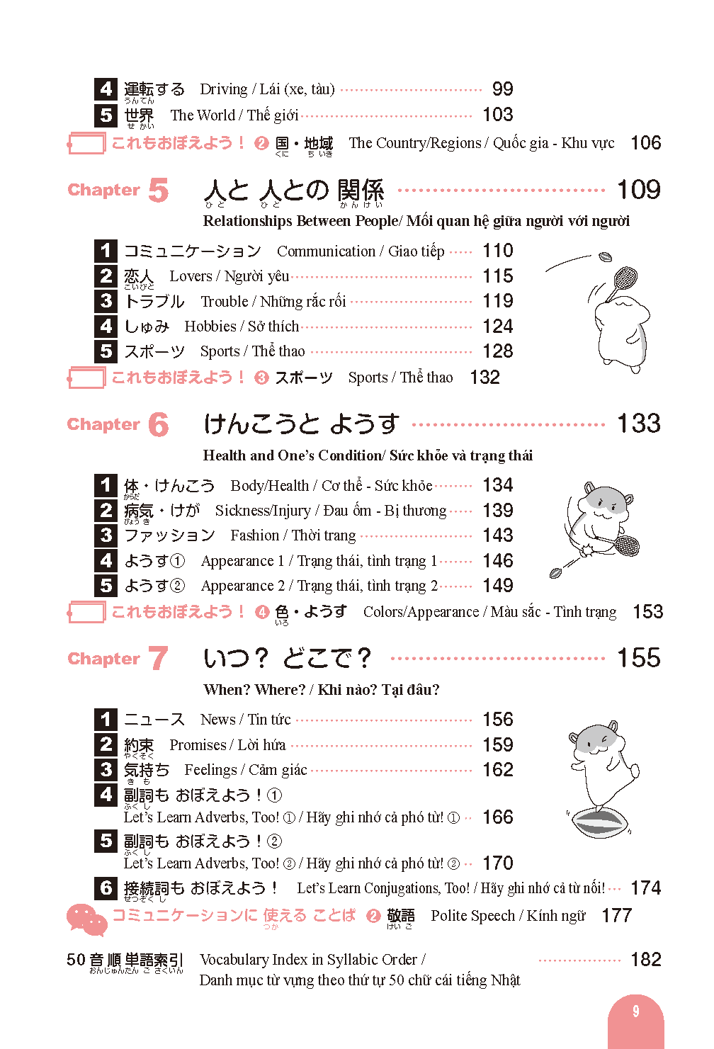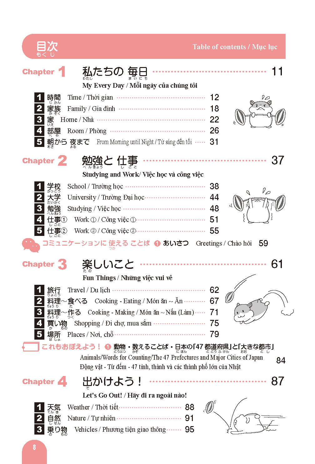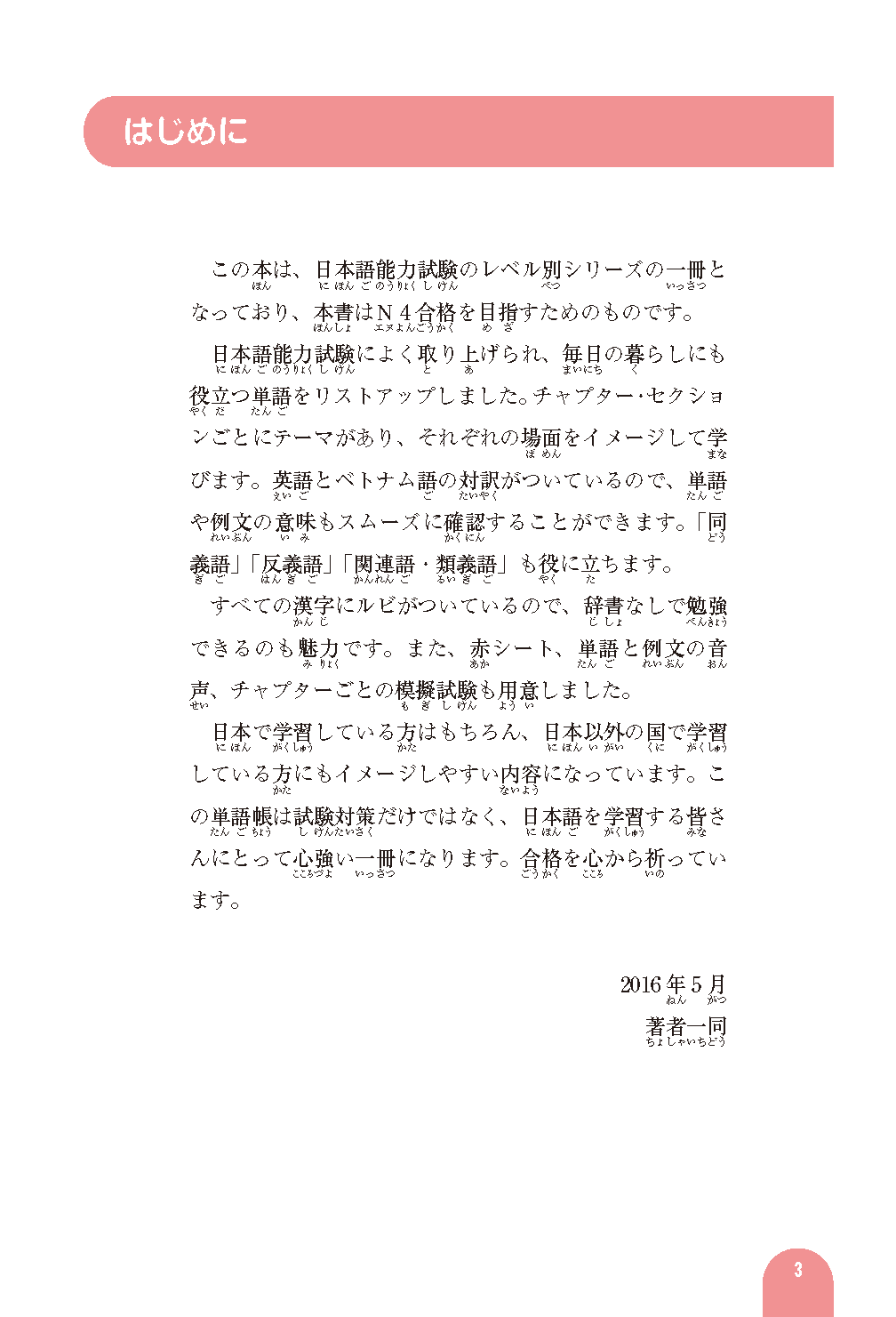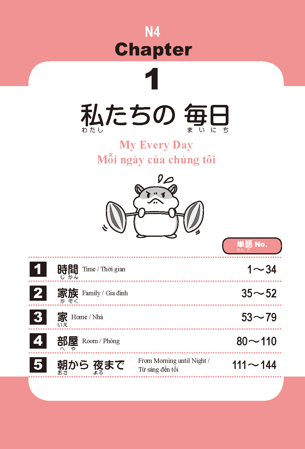 Vocabulary frequently used on the Japanese Language Proficiency Test is organized by theme and divided into chapters and sections for easy study.