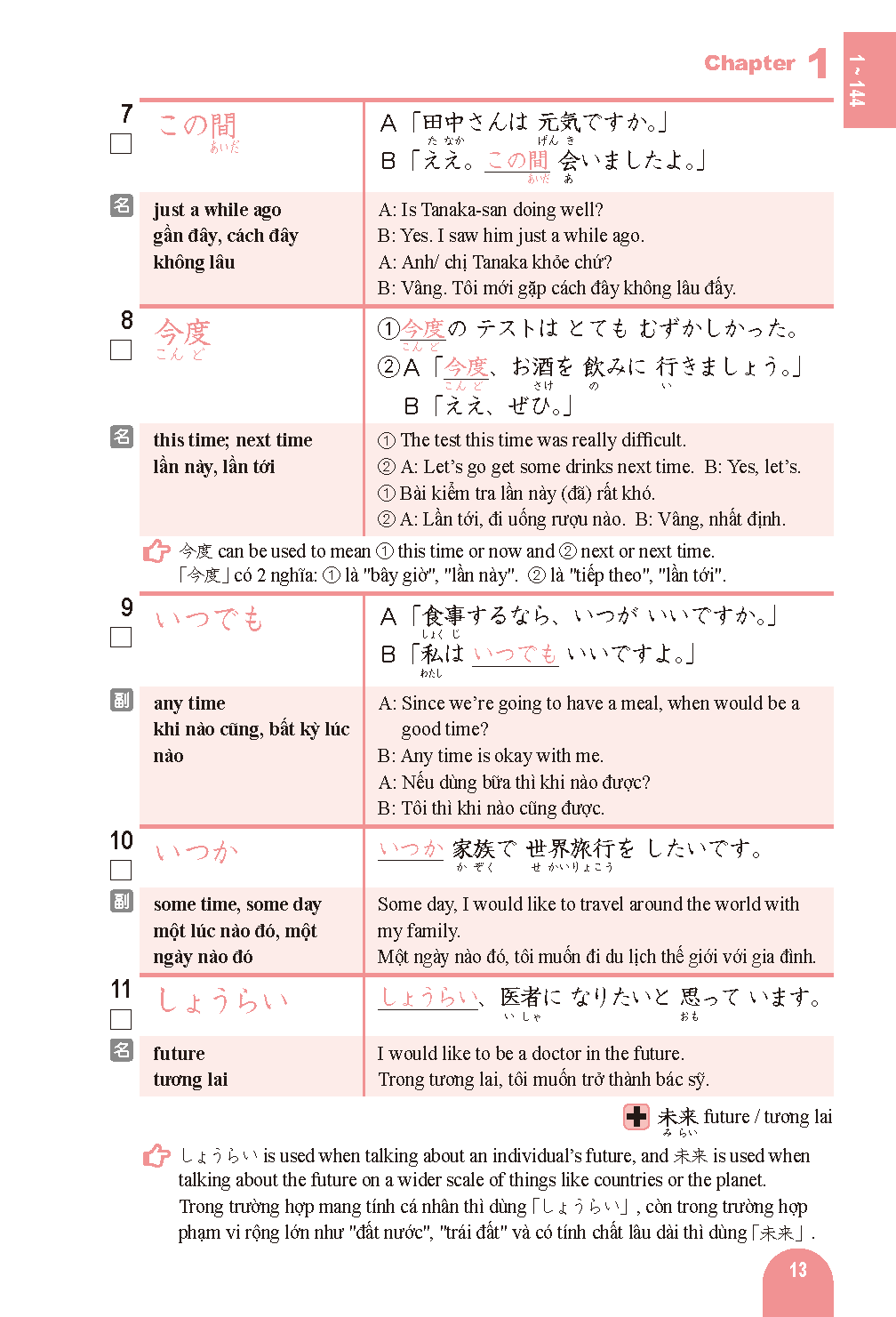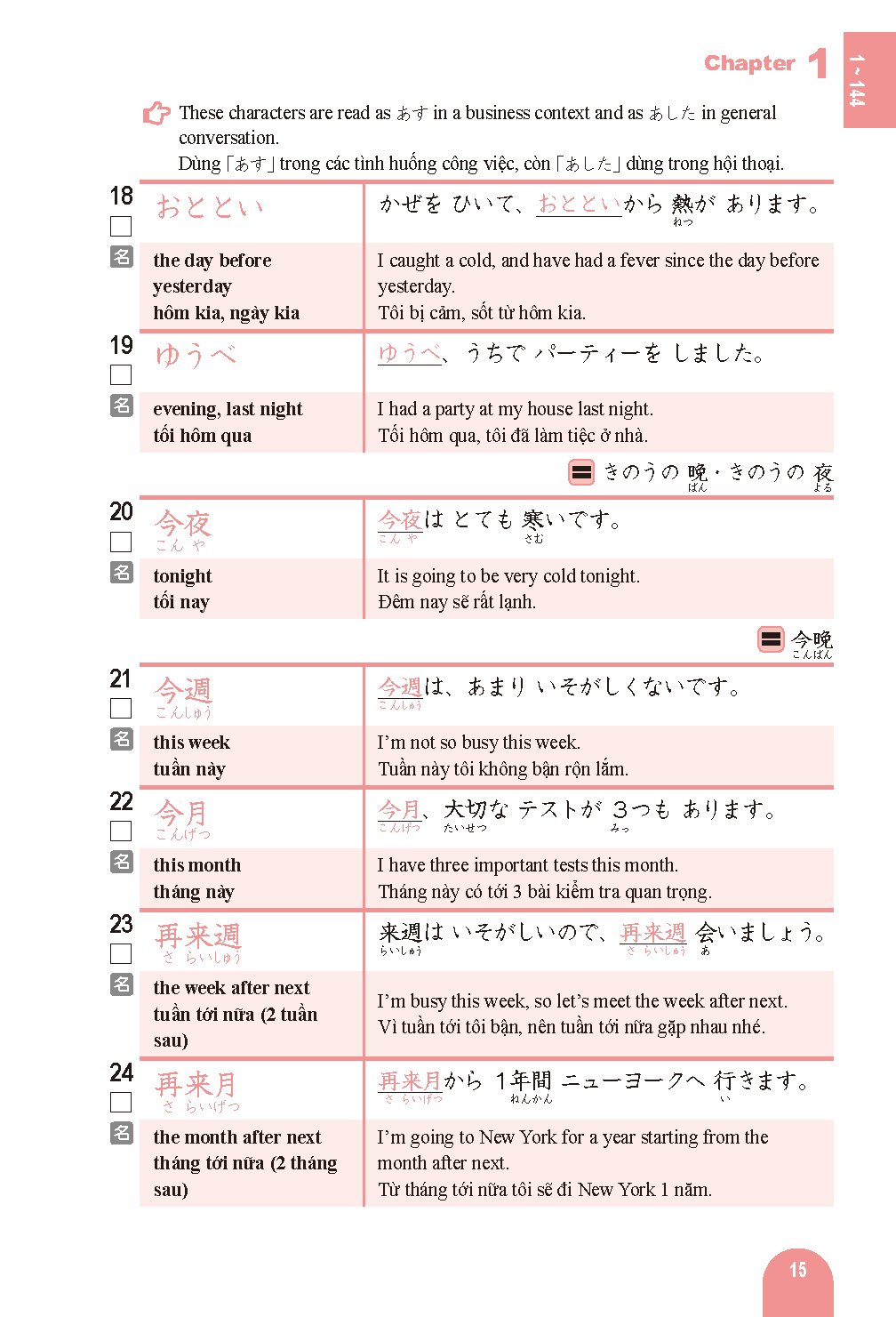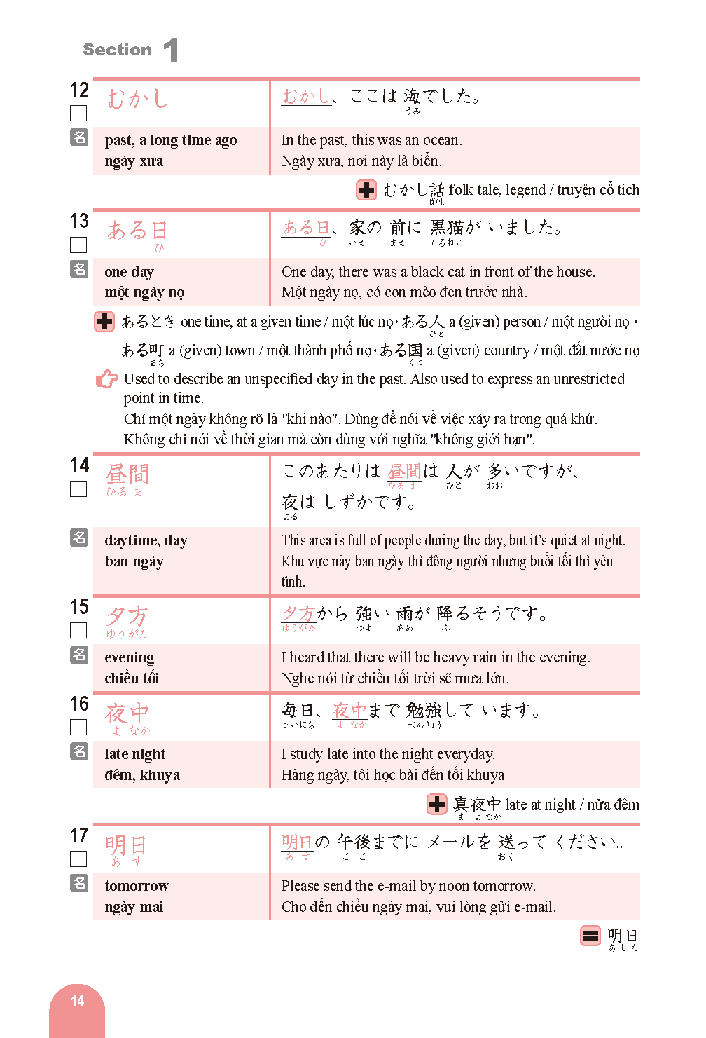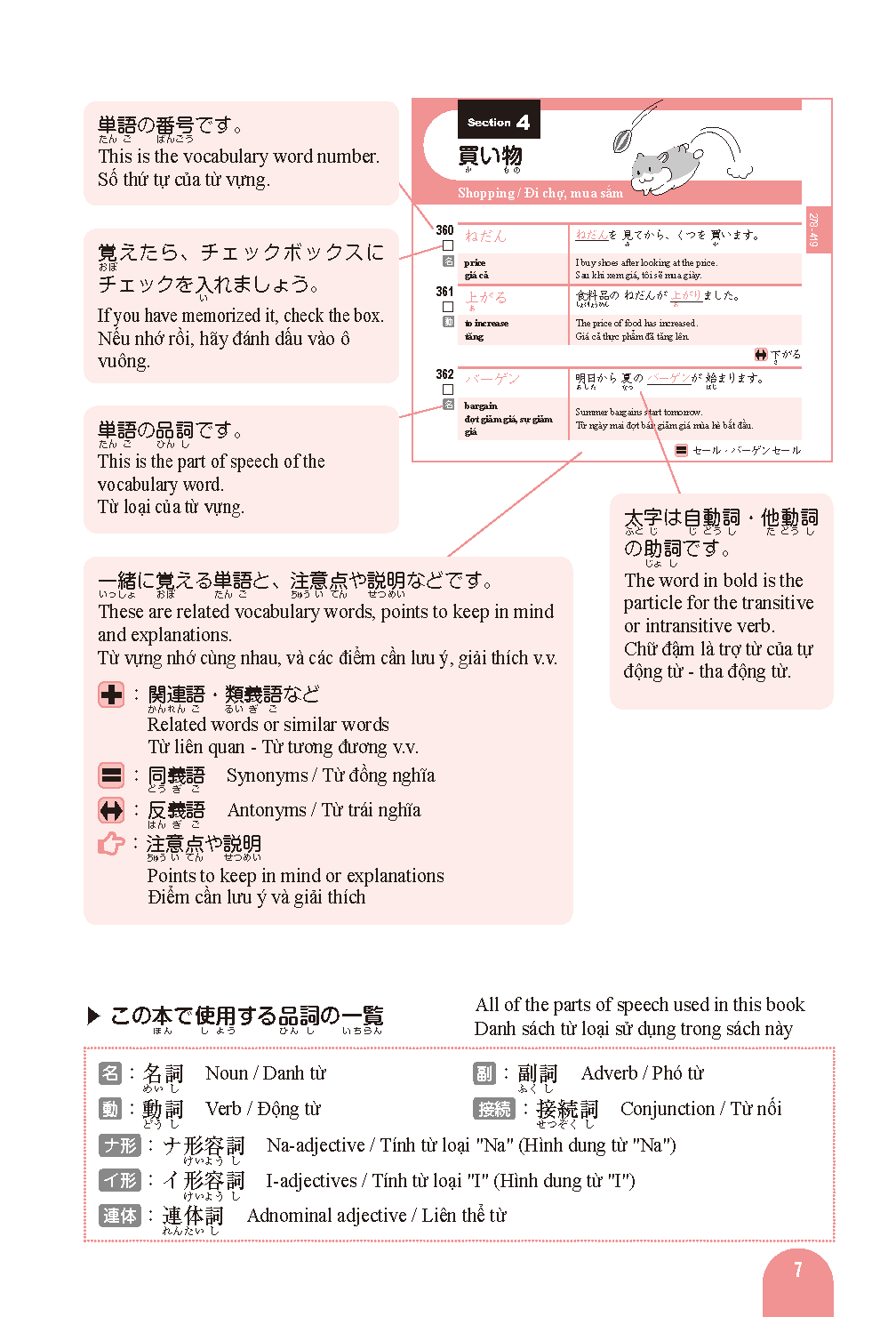 単語と例文には英語・ベトナム語訳付き。