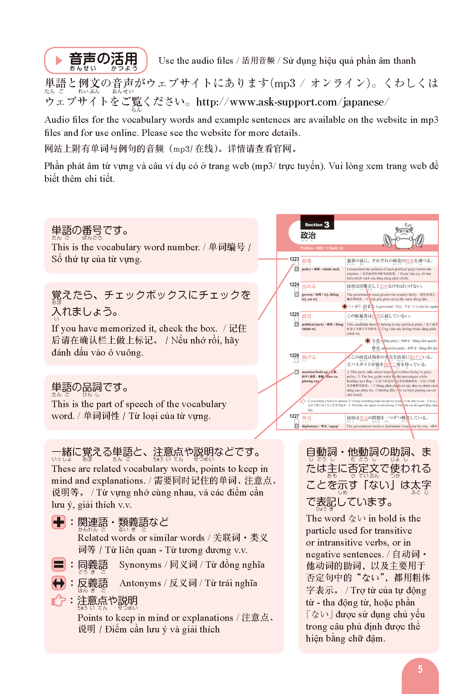 ❷ Includes audio files for vocabulary and example sentences