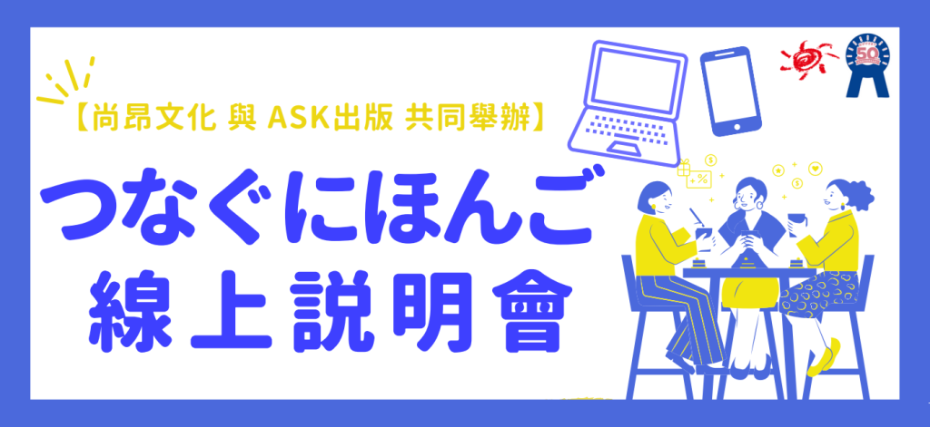 ホーム 会社情報 ニュース 9/5 尚昂文化 與 ASK出版 共同舉辦 「つなぐにほんご線上説明會」 9/5 尚昂文化 與 ASK出版 共同舉辦 「つなぐにほんご線上説明會」 2025.08.25 イベント 《つなぐにほんご》是一套全新的日語教材系列。 有什麼樣的設計理念呢?怎麼使用呢? 讓作者透過模擬教學影片為您詳細說明。 尚昂文化 與 ASK出版 共同舉辦 「つなぐにほんご線上説明會」 使用語言:日語 活動時間:114年9月5日(星期五)下午2點-4點 (台湾時間) 講者:辻和子老師(《つなぐにほんご》系列作者) 對象:日語教師、 對日語教育有興趣的人士 費用:免費參加 Zoom會議室可自由進出 活動結束後將提供回放影片給已報名者 報名截止時間: 114年9月5日(星期五)上午9點 (台湾時間) お申込みはこちら ニュース一覧へ戻る 会社情報 会社概要 会社沿革 事業紹介 ニュース