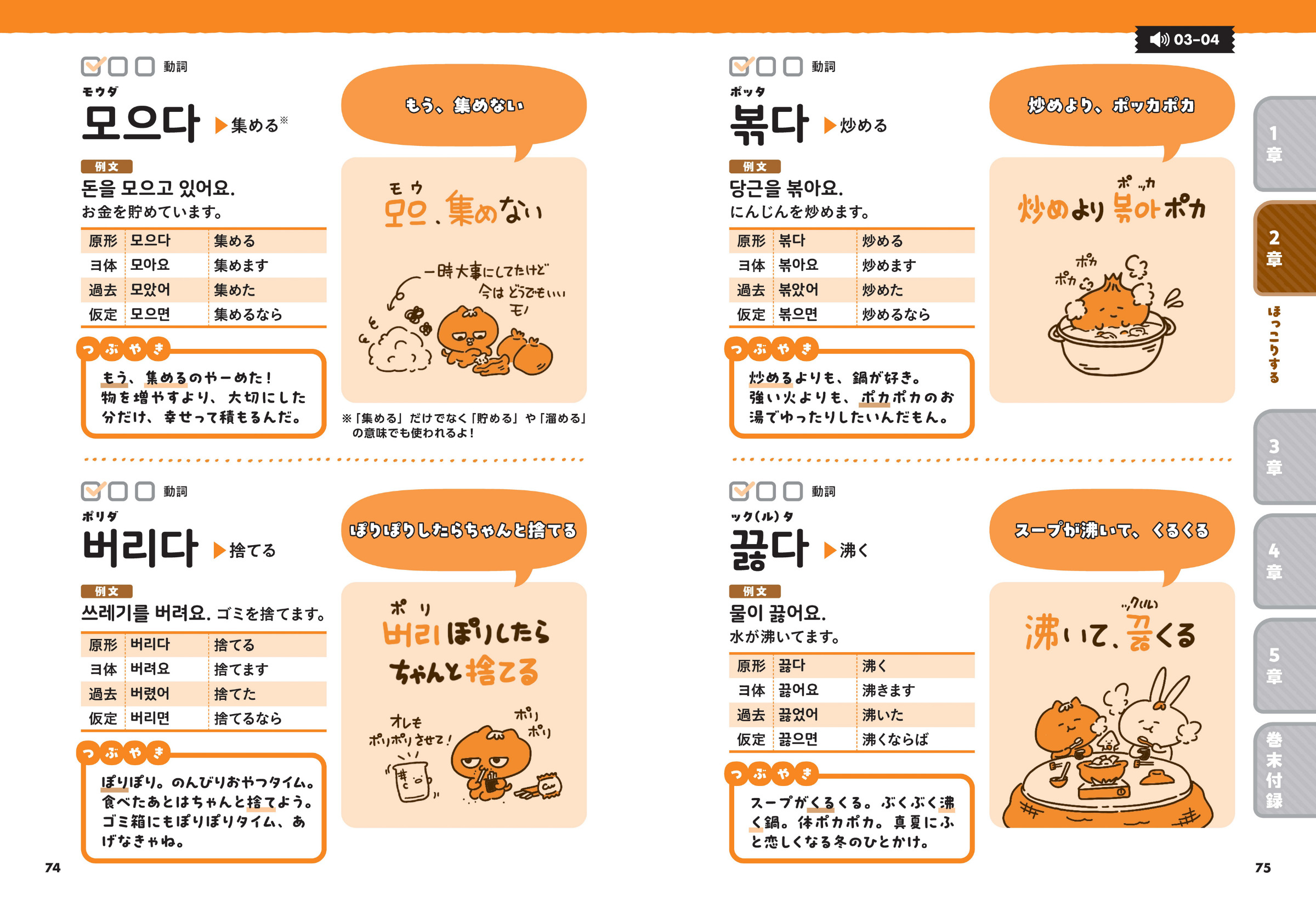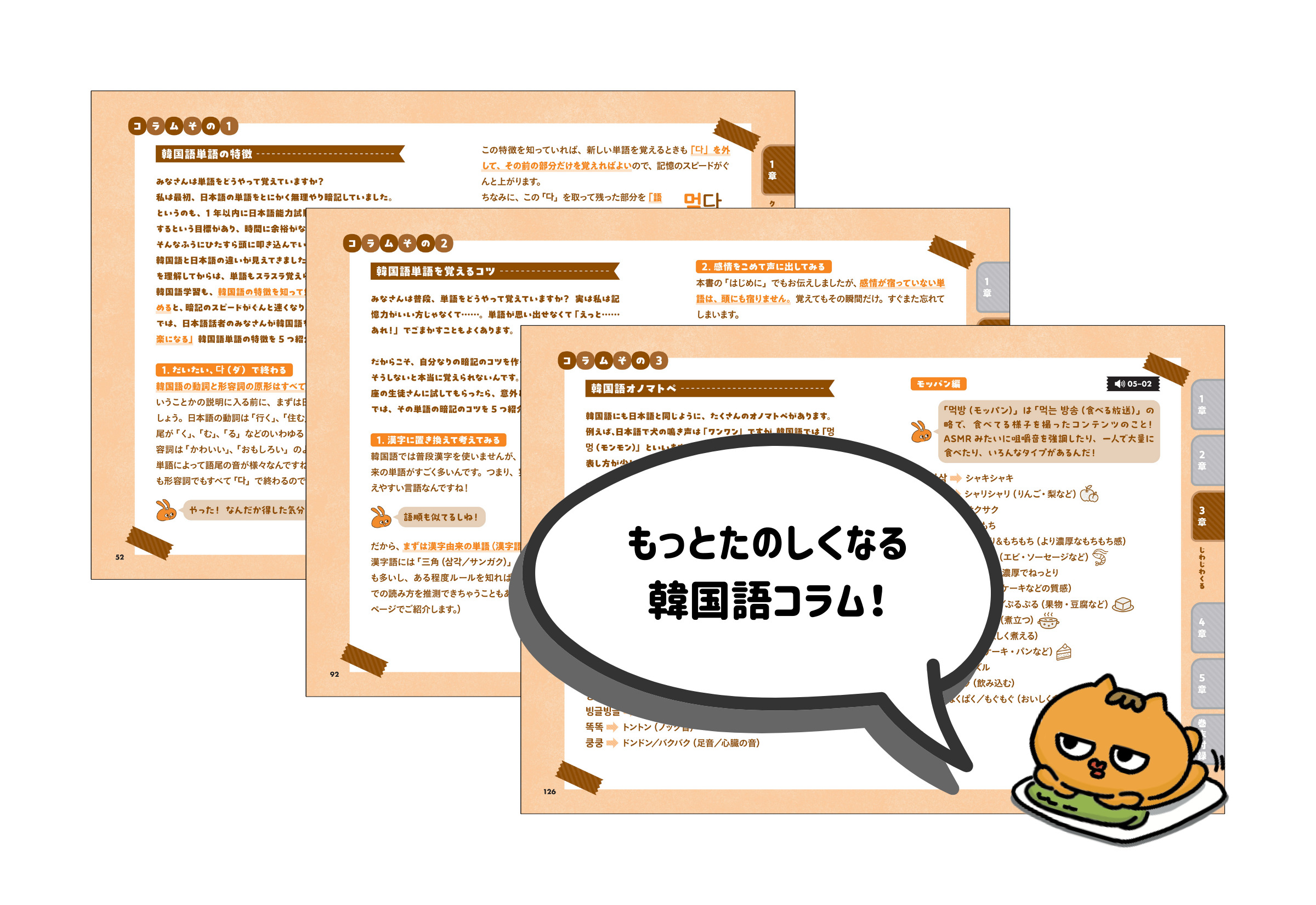 韓国語母語話者である著者による「ネイティブっぽい発音のコツ」や「現地でよく使う表現」、「効率を高める韓国語単語学習のポイント」など、楽しく学ぶためのヒントが盛り沢山。